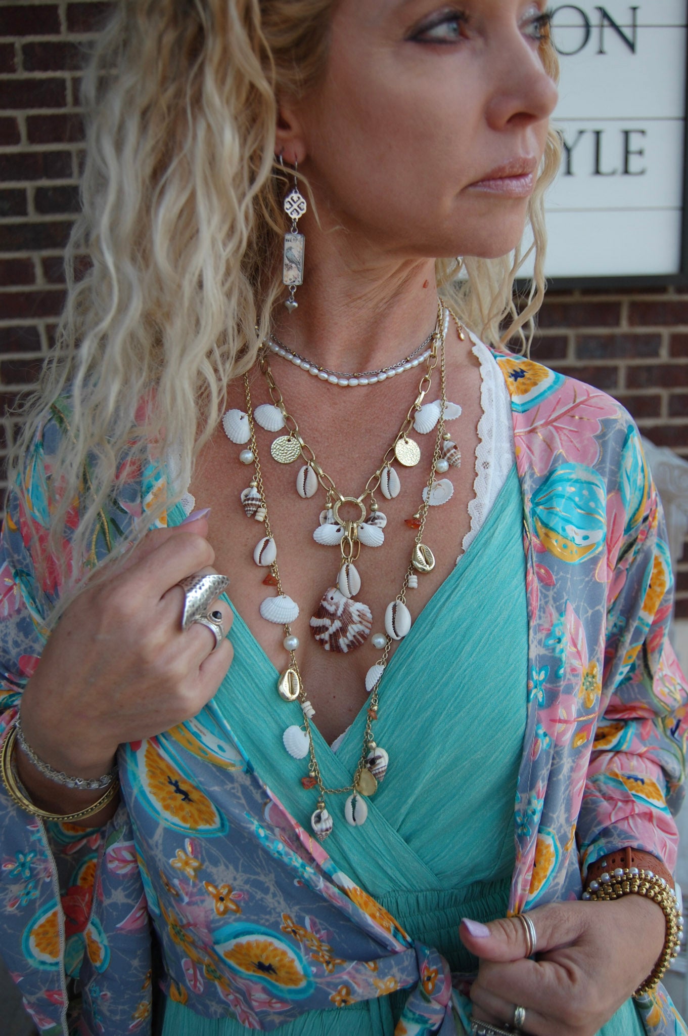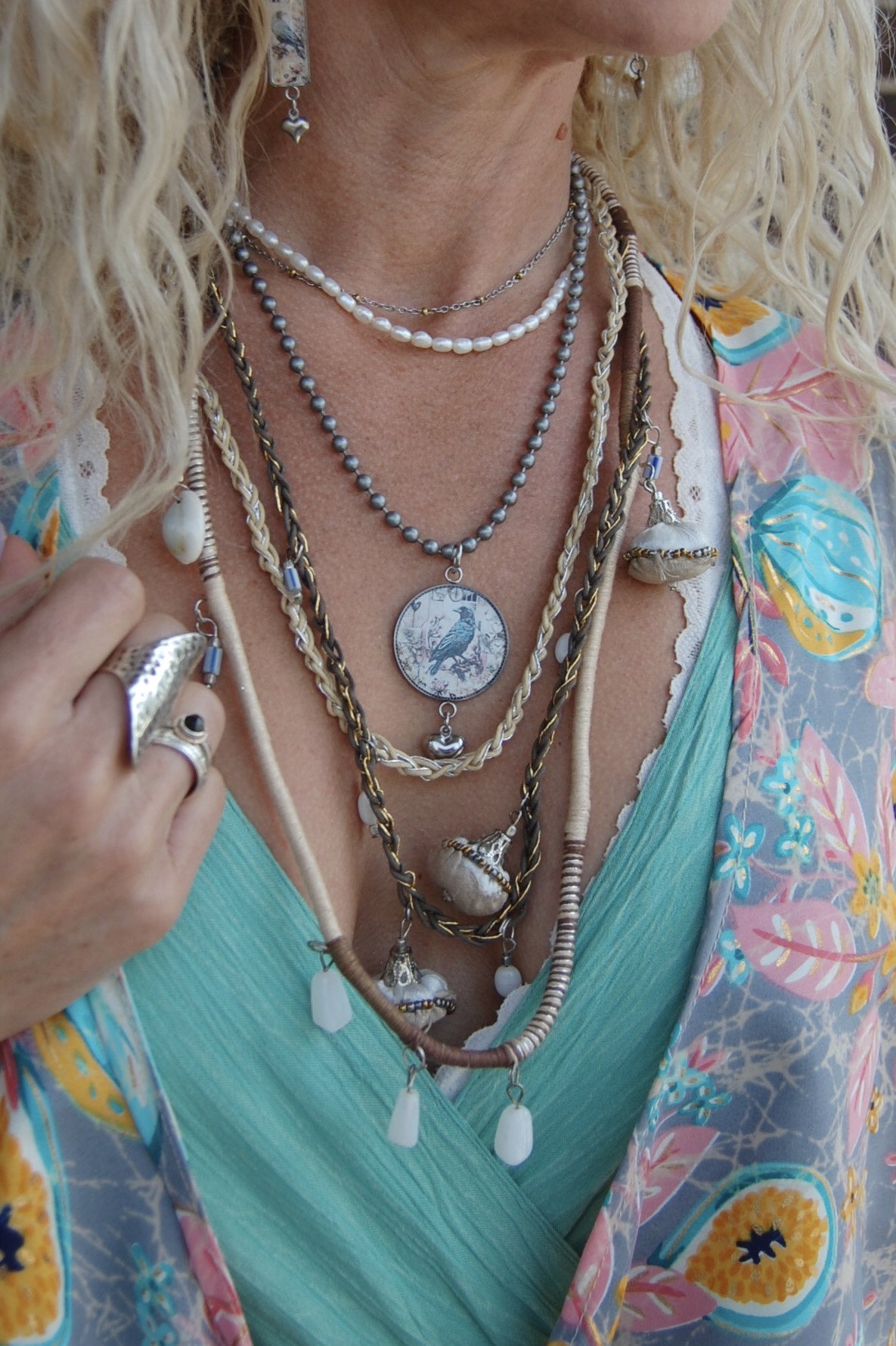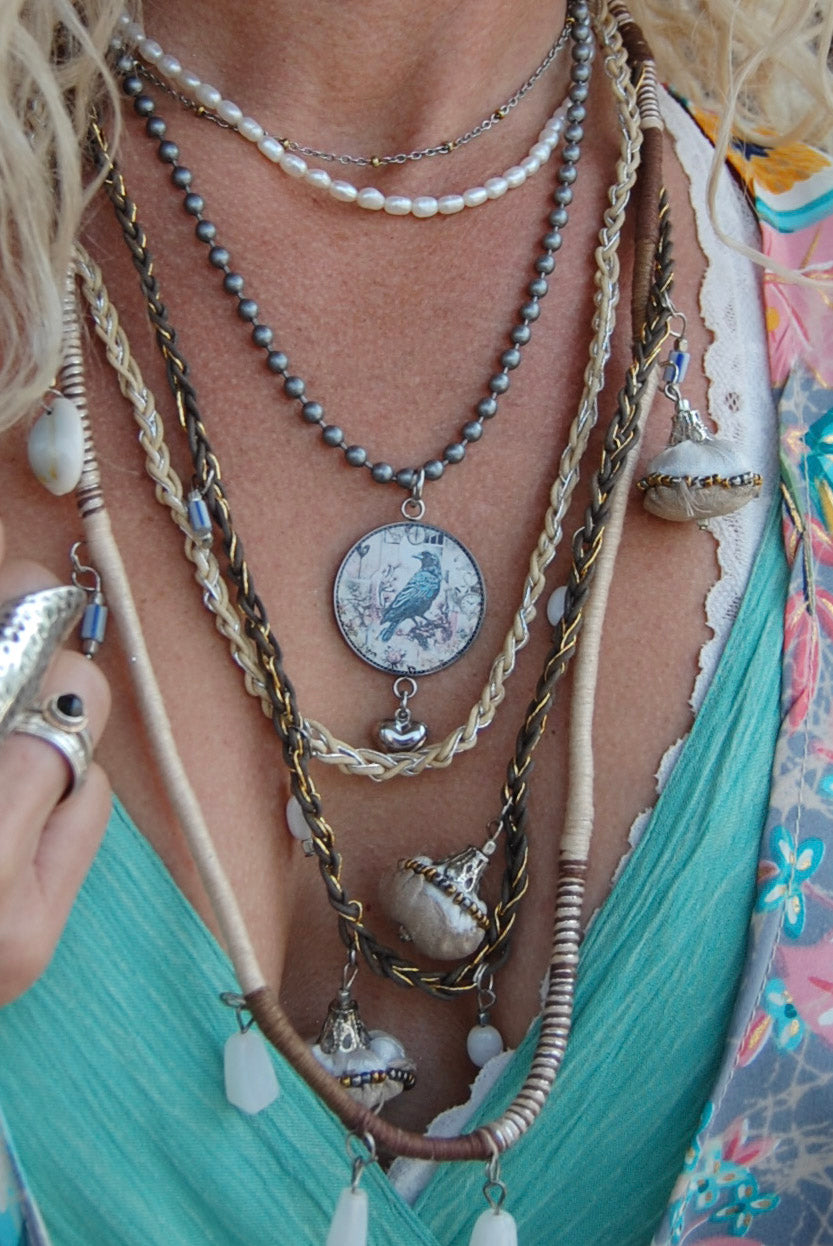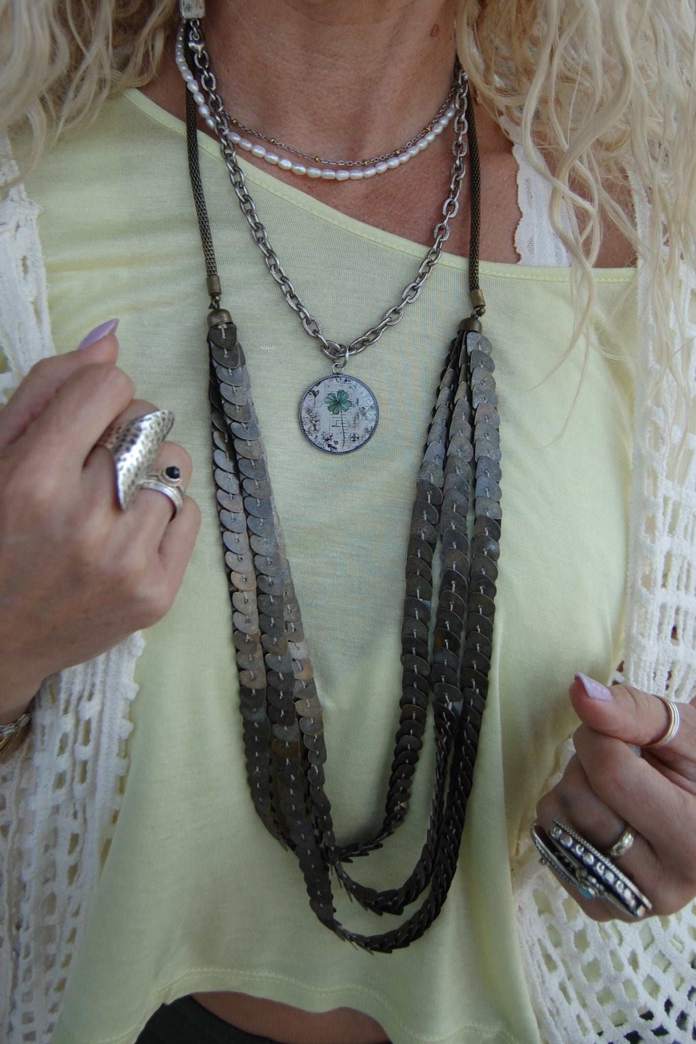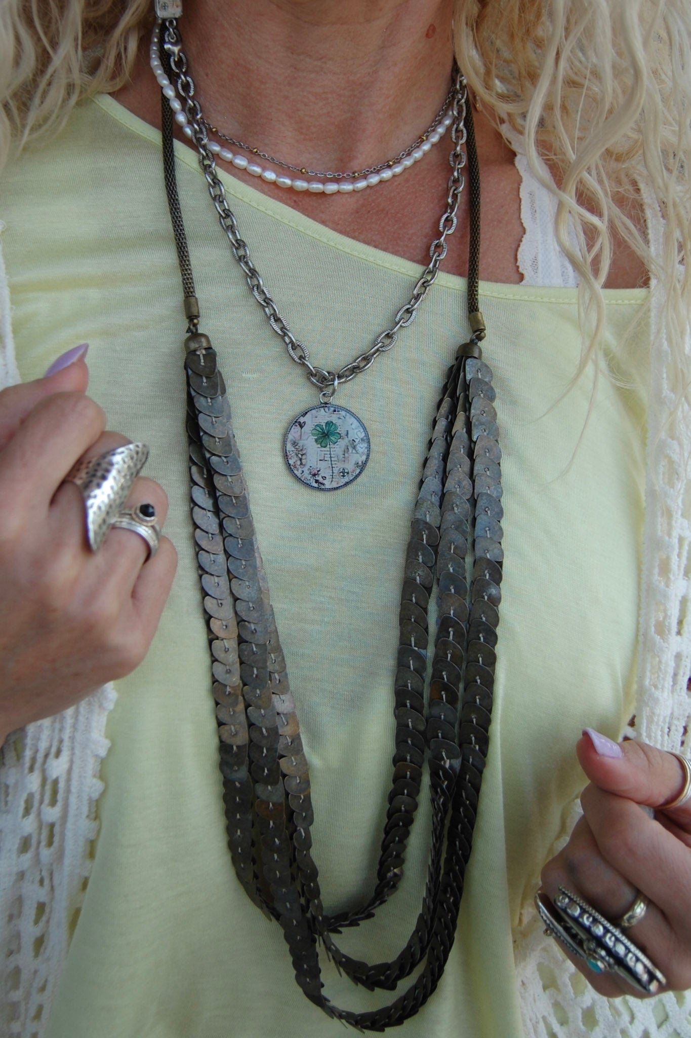 Mermaid Large Circle Distressed Pendant Charm Necklace