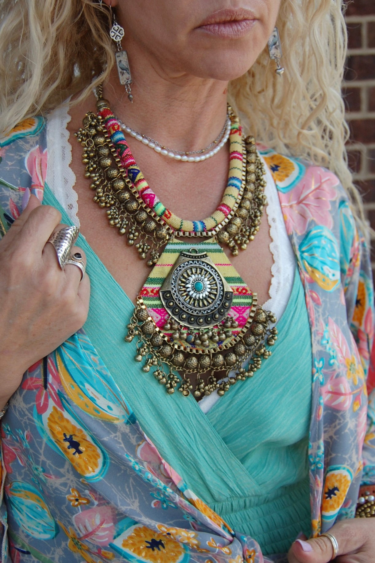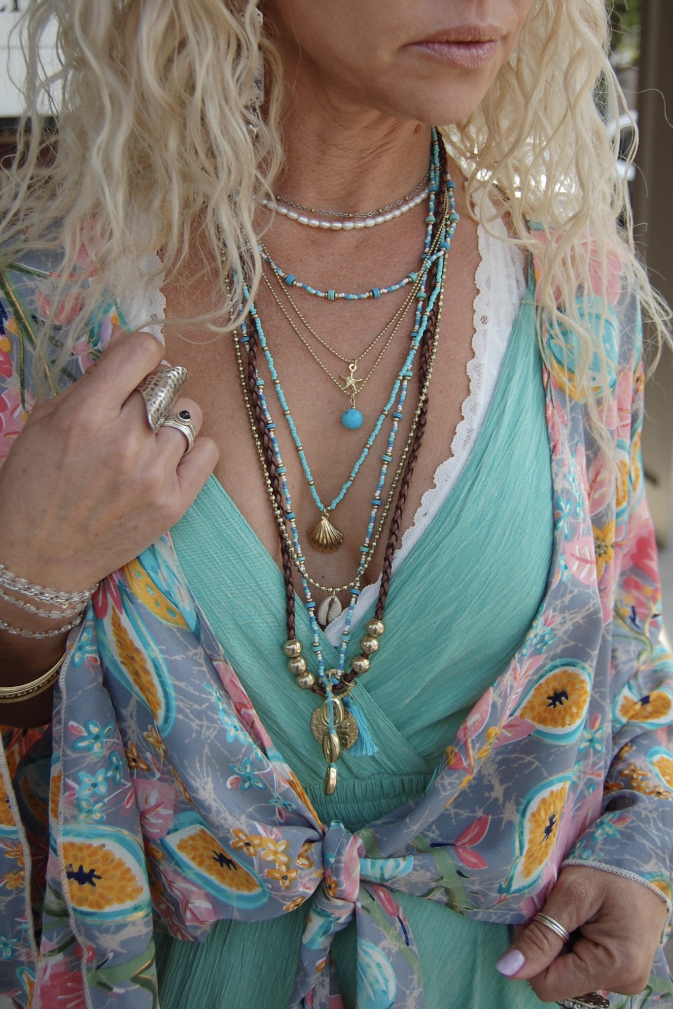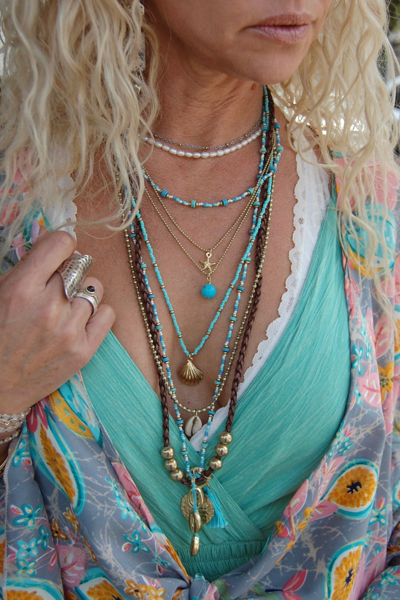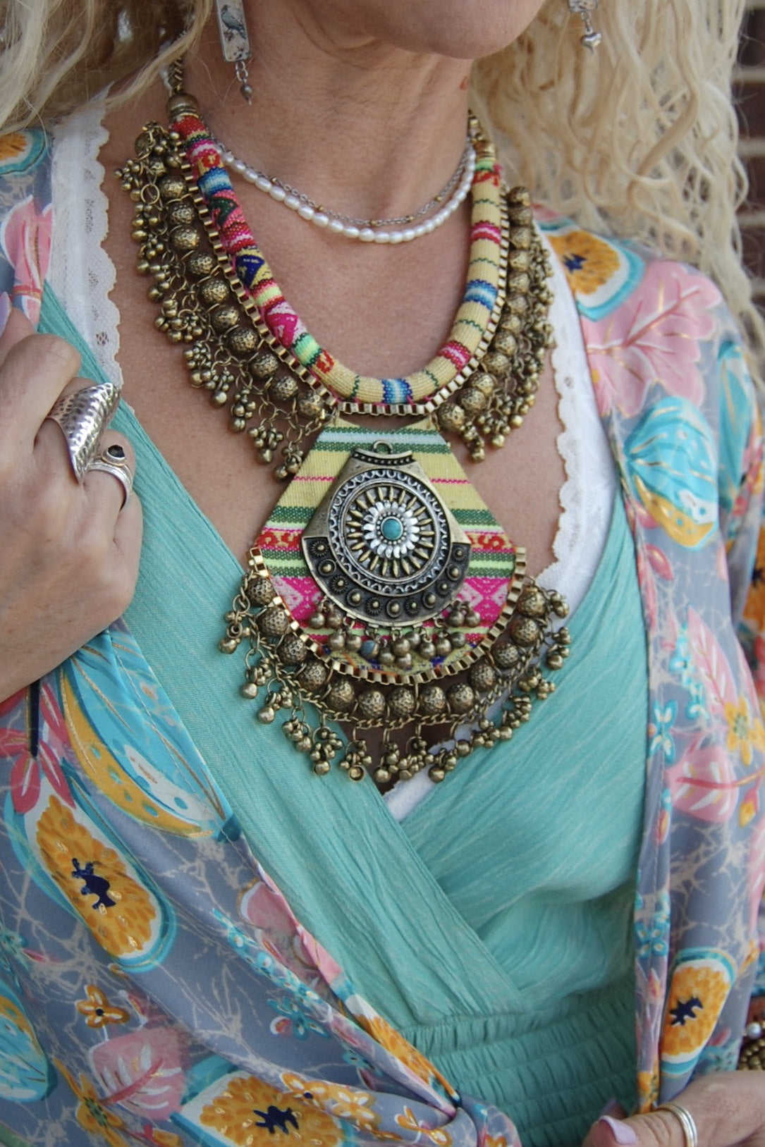 Mermaid Large Circle Distressed Pendant Charm Necklace