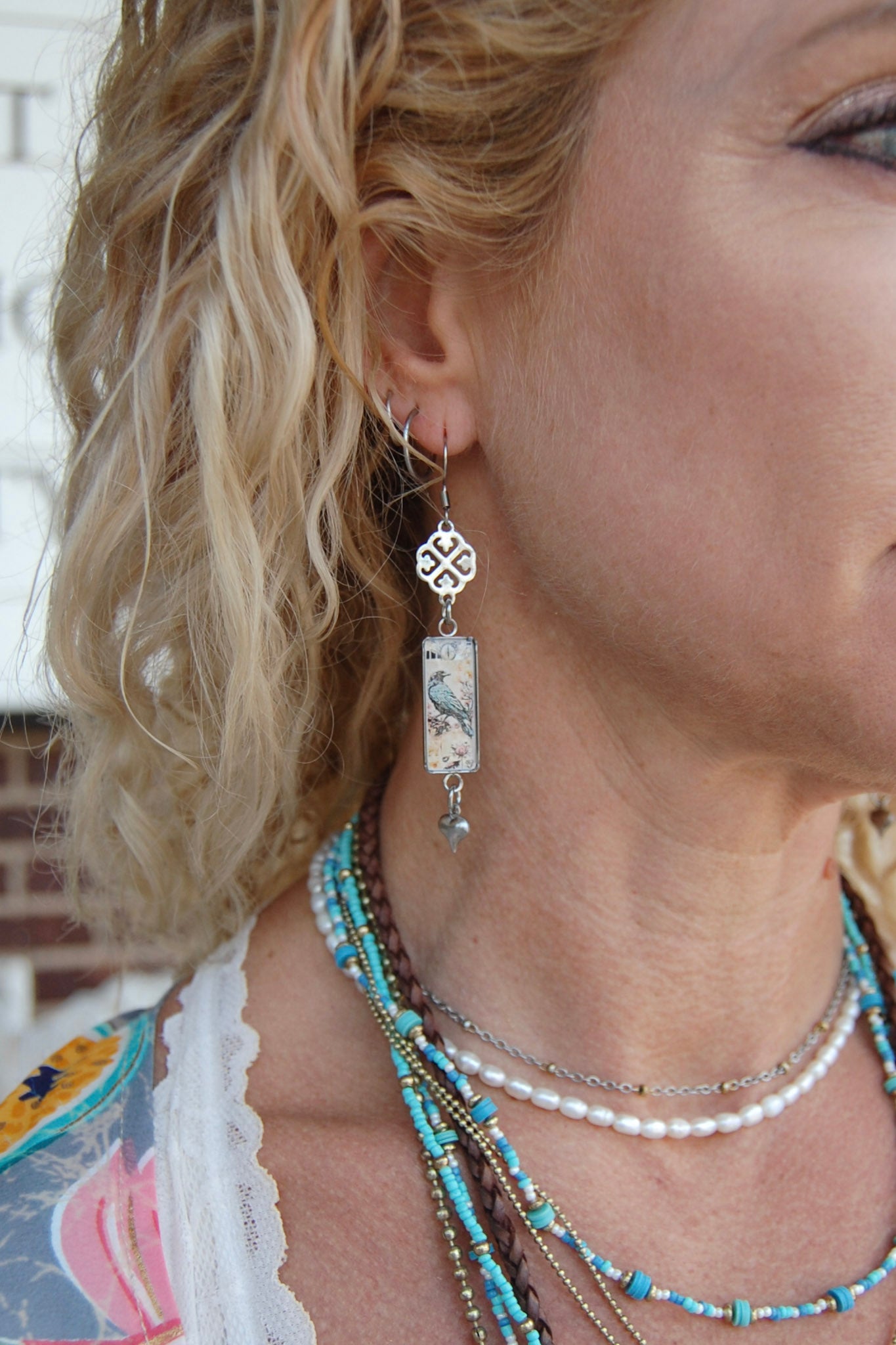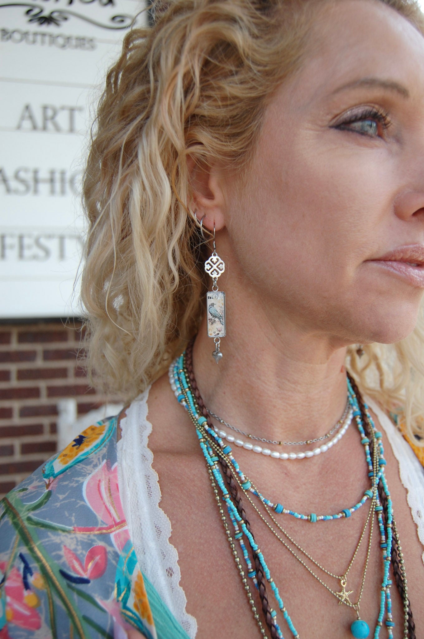 Bird & Insect Design Rustic Rectangular Charm Necklace