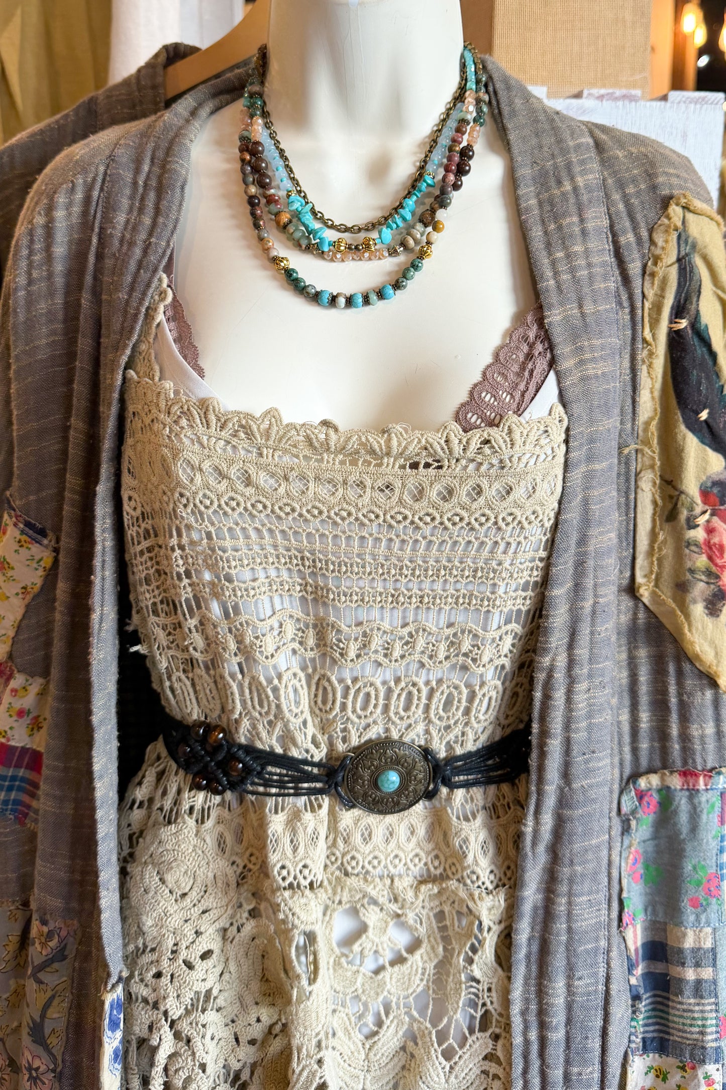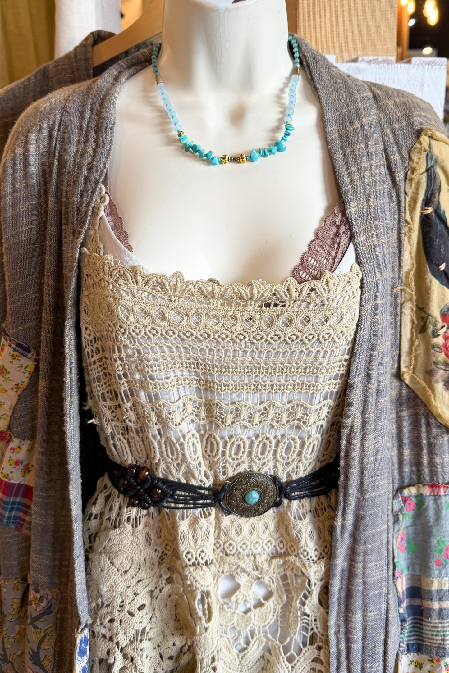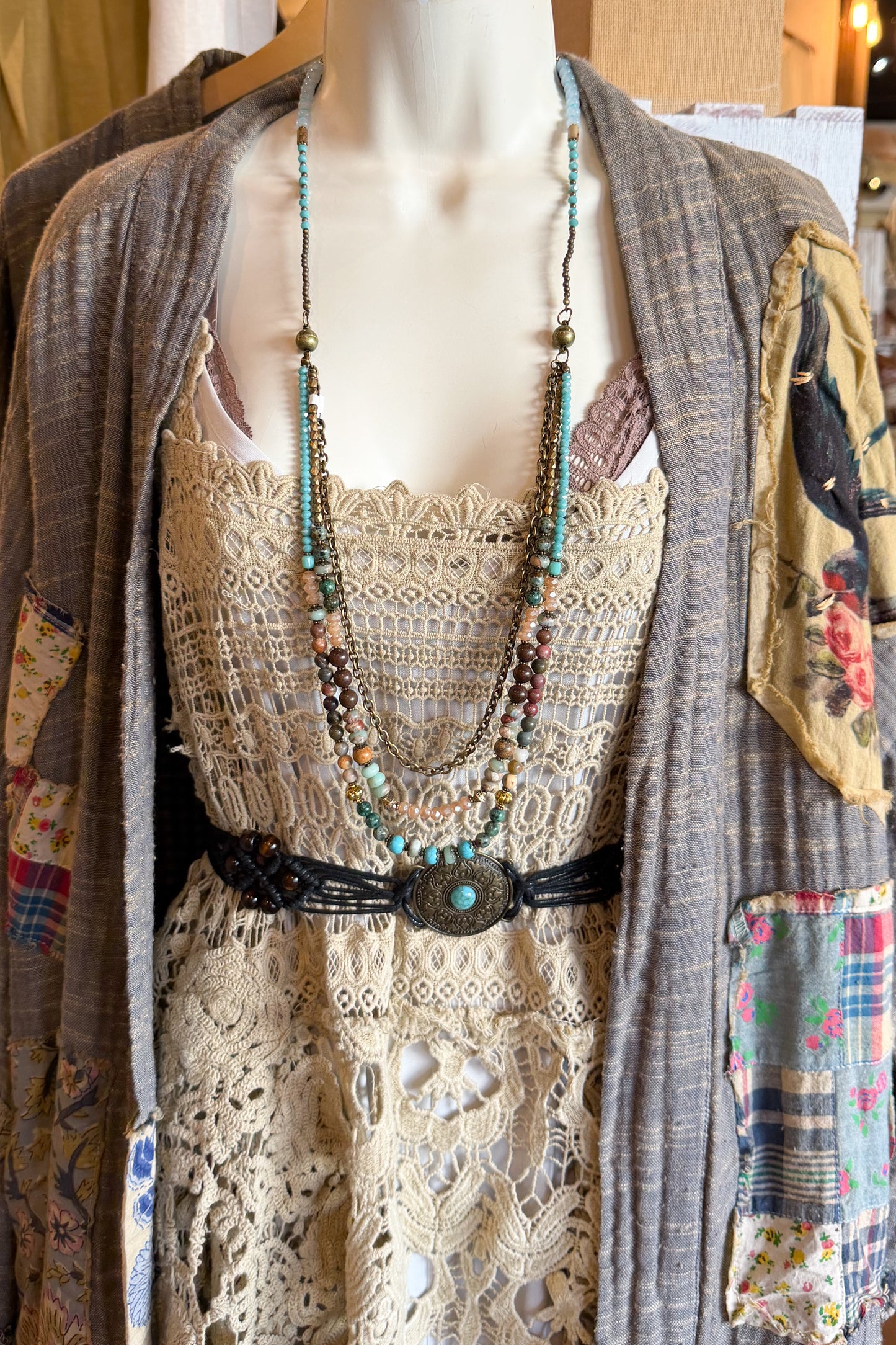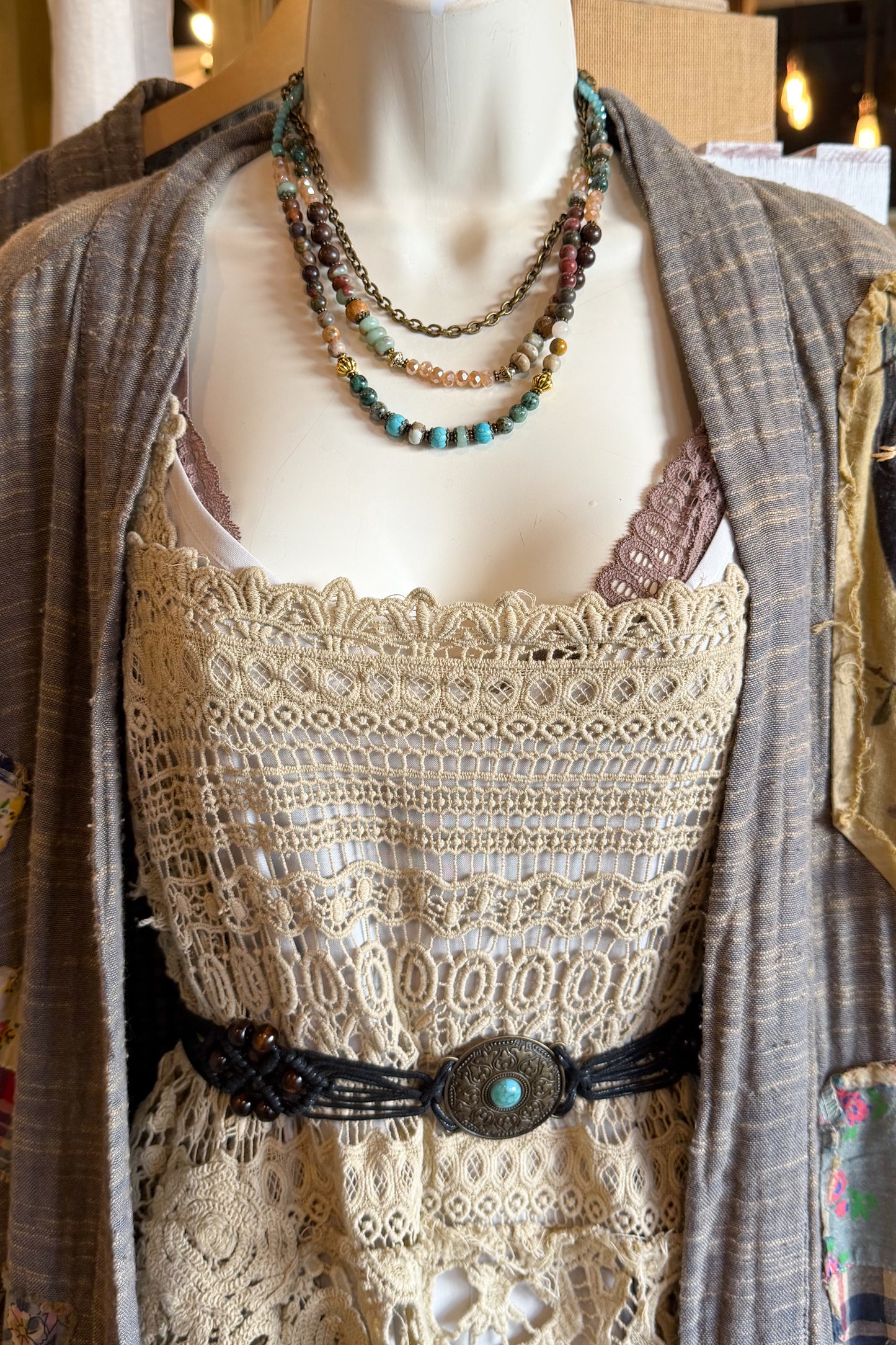 This Turquoise and Tan Layered Necklace is the perfect accessory to add to any on-trend bohemian style outfit! Layered with any of our many statement necklaces, of your choosing, the Turquoise and Tan Layered Necklace will be sure to be a wonderful addition to any necklace layering style!