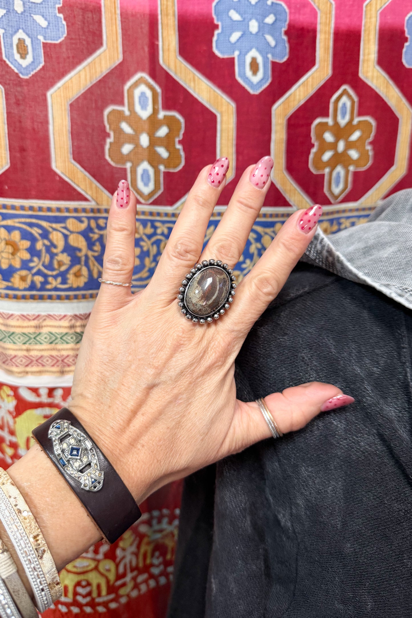 Our Stainless Sphene Oval Ring is the perfect accessory to add to any on-trend bohemian style outfit! Paired with any of our many statement necklaces, earrings, and other bracelets, of your choosing, the Stainless Sphene Oval Ring will be sure to be a wonderful addition to any outfit!