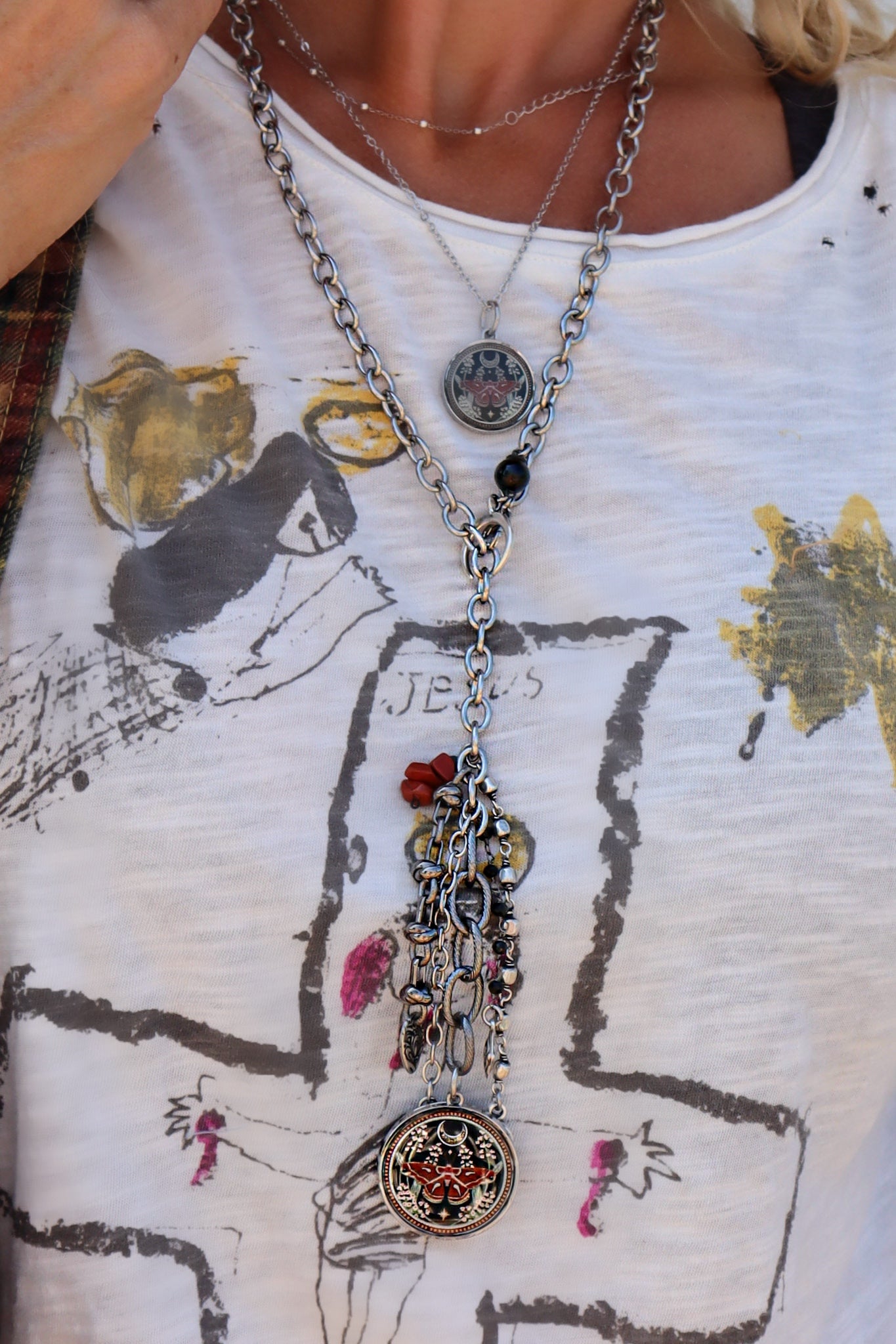 Our Spirit Lala: Rustic Chain Drop Butterfly Art Pendant Necklace is the perfect accessory to add to any on-trend bohemian style outfit! Layered with any of our many statement necklaces, of your choosing, the Spirit Lala: Rustic Chain Drop Butterfly Art Pendant Necklace will be sure to be a wonderful addition to any necklace layering style!