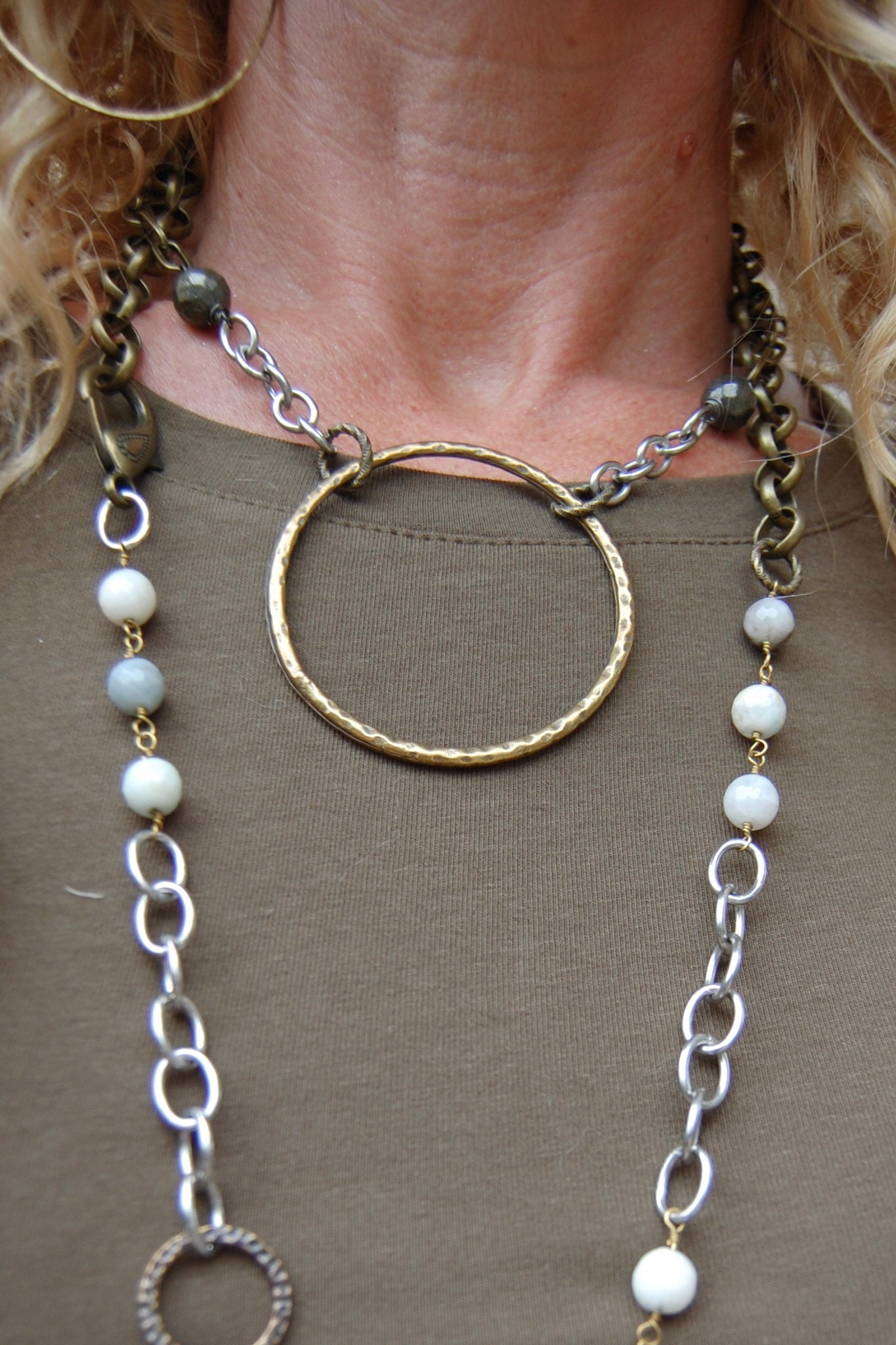 Spirit Lala Vintage Coin: Gemstone Hammered O-Ring Necklace