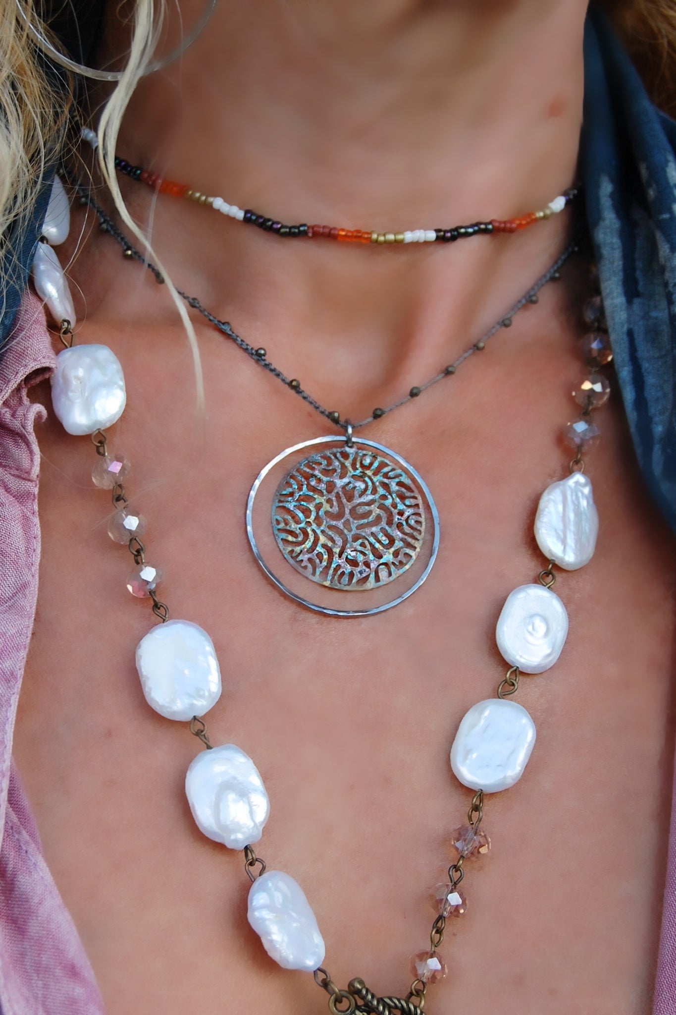 Our Spirit Lala Zen: Doubled Up Abstract Medallion Necklace features: