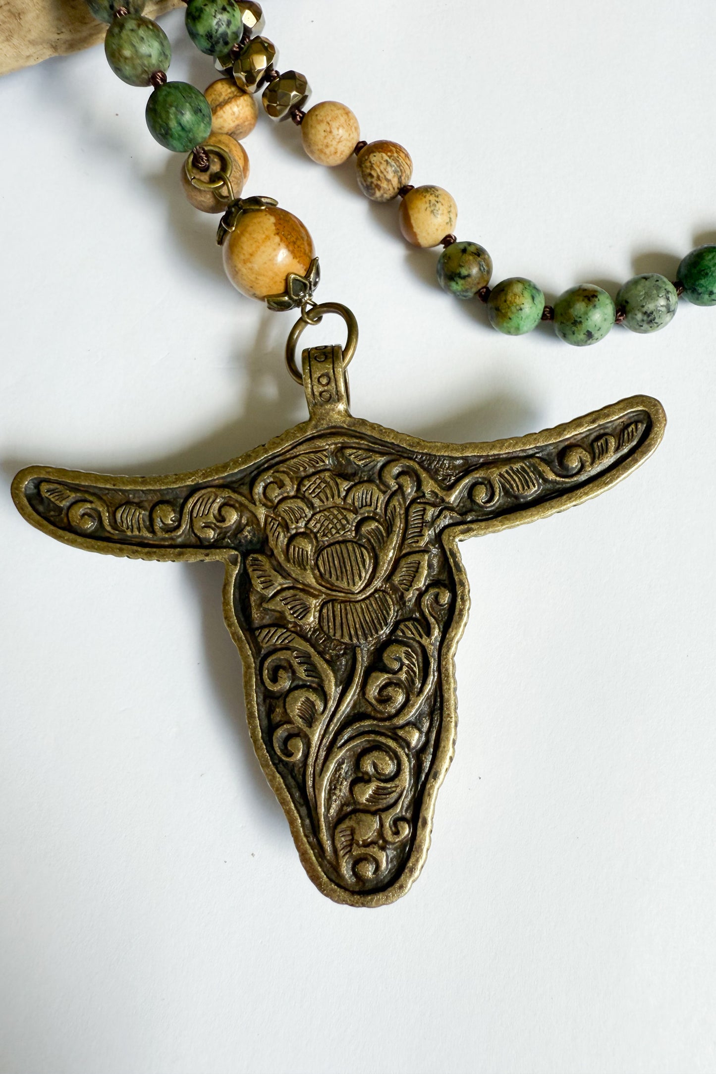 Our Statement Bull Gemstone Necklace features: