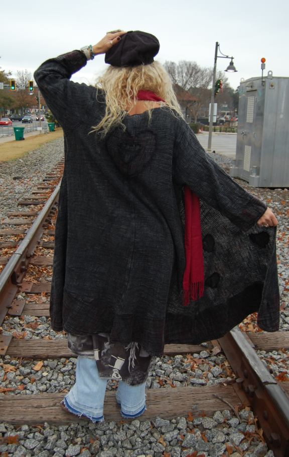 To maintain quality, this Love thy Heart Duster in Grey is best when washed in cold water and hung dry. Low ironing if needed!
