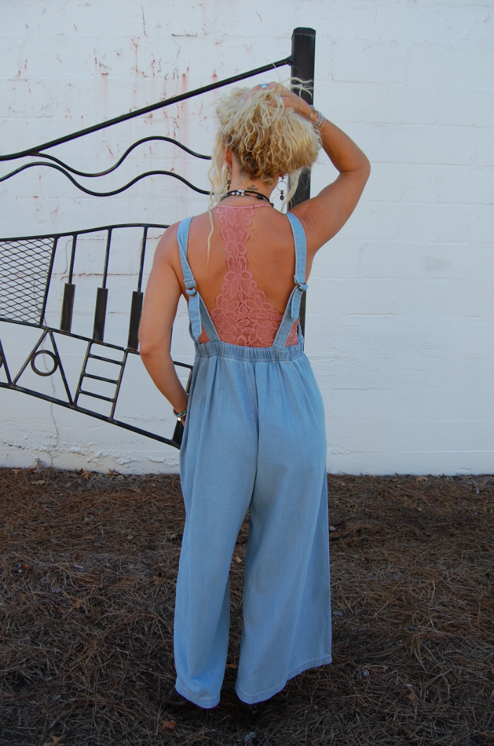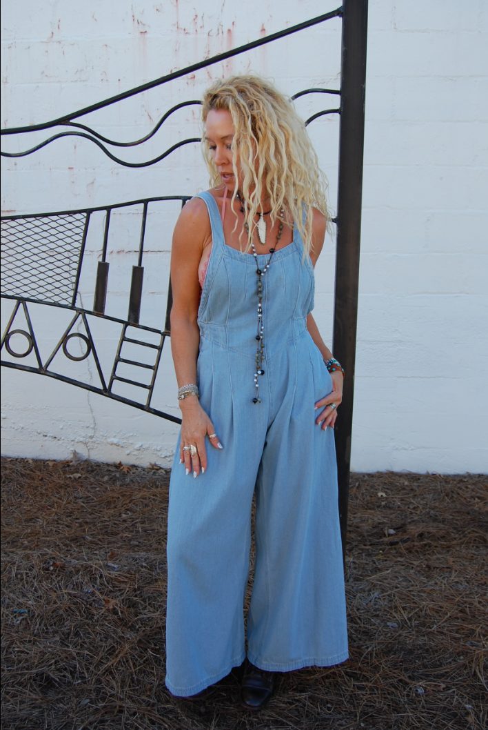 Penelope Pleated Denim Overalls in Light