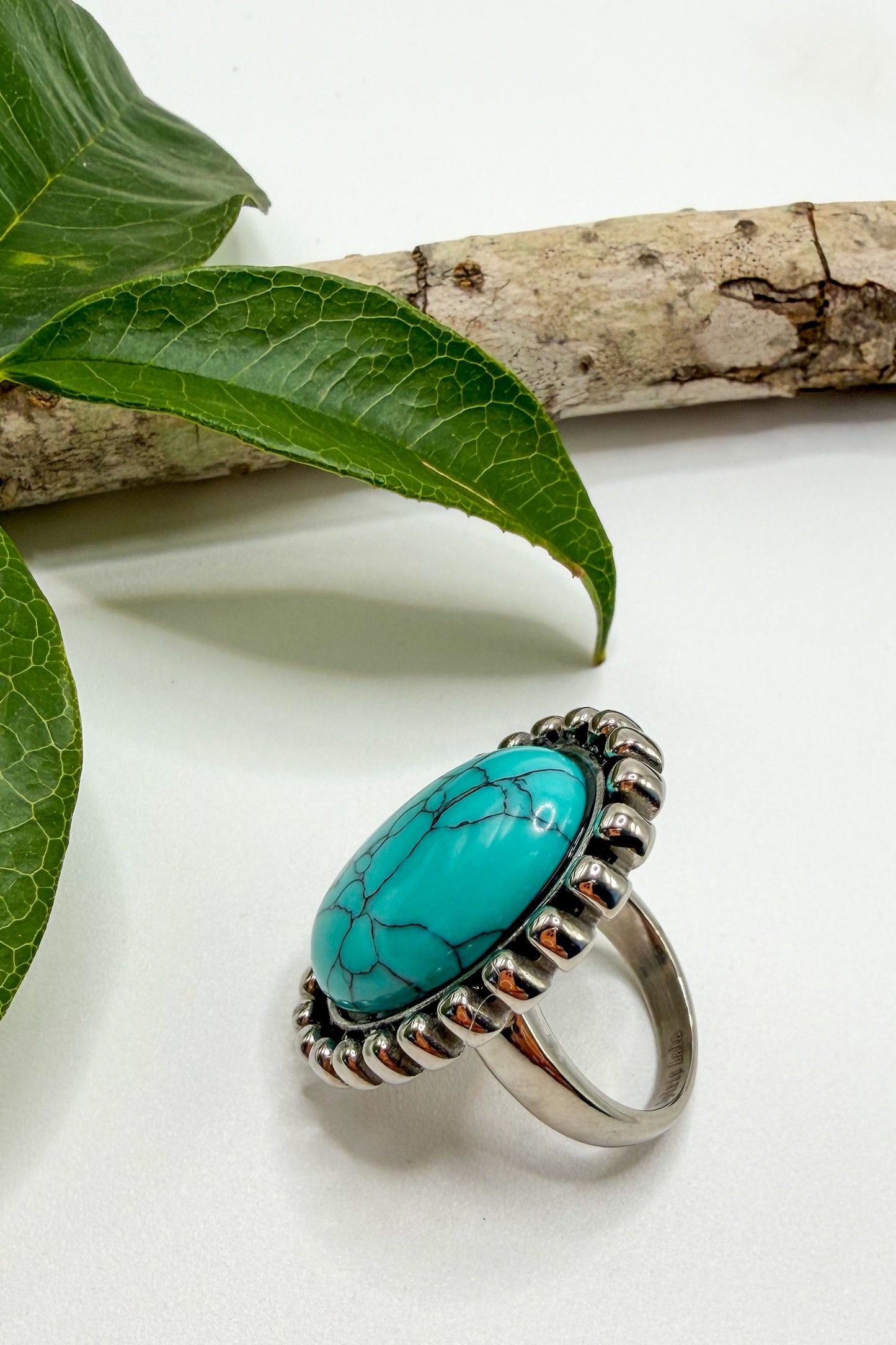 Stainless Turquoise Oval Ring