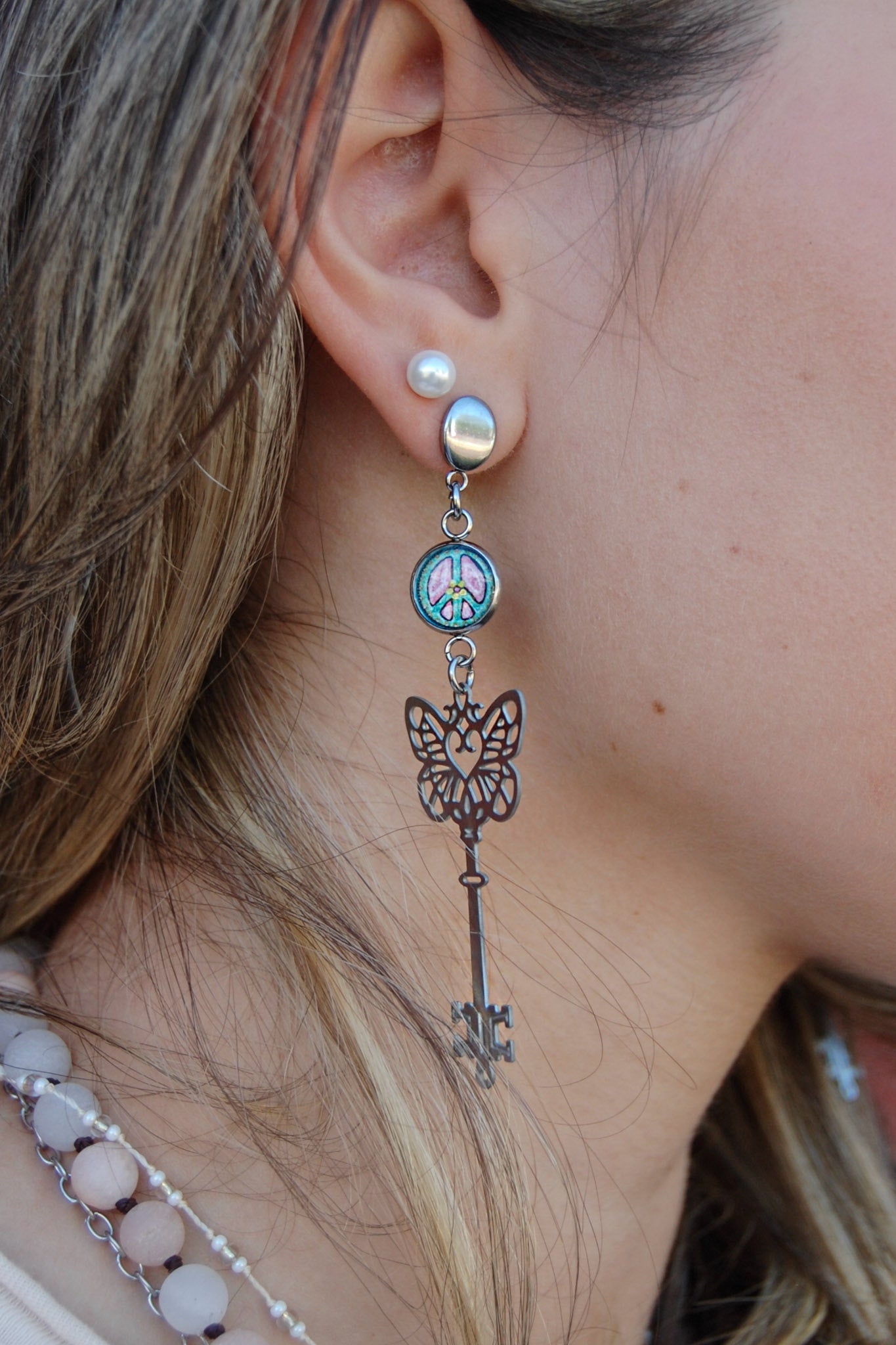 Spirit Lala: Peace Sign Butterfly Key Drop Earrings
