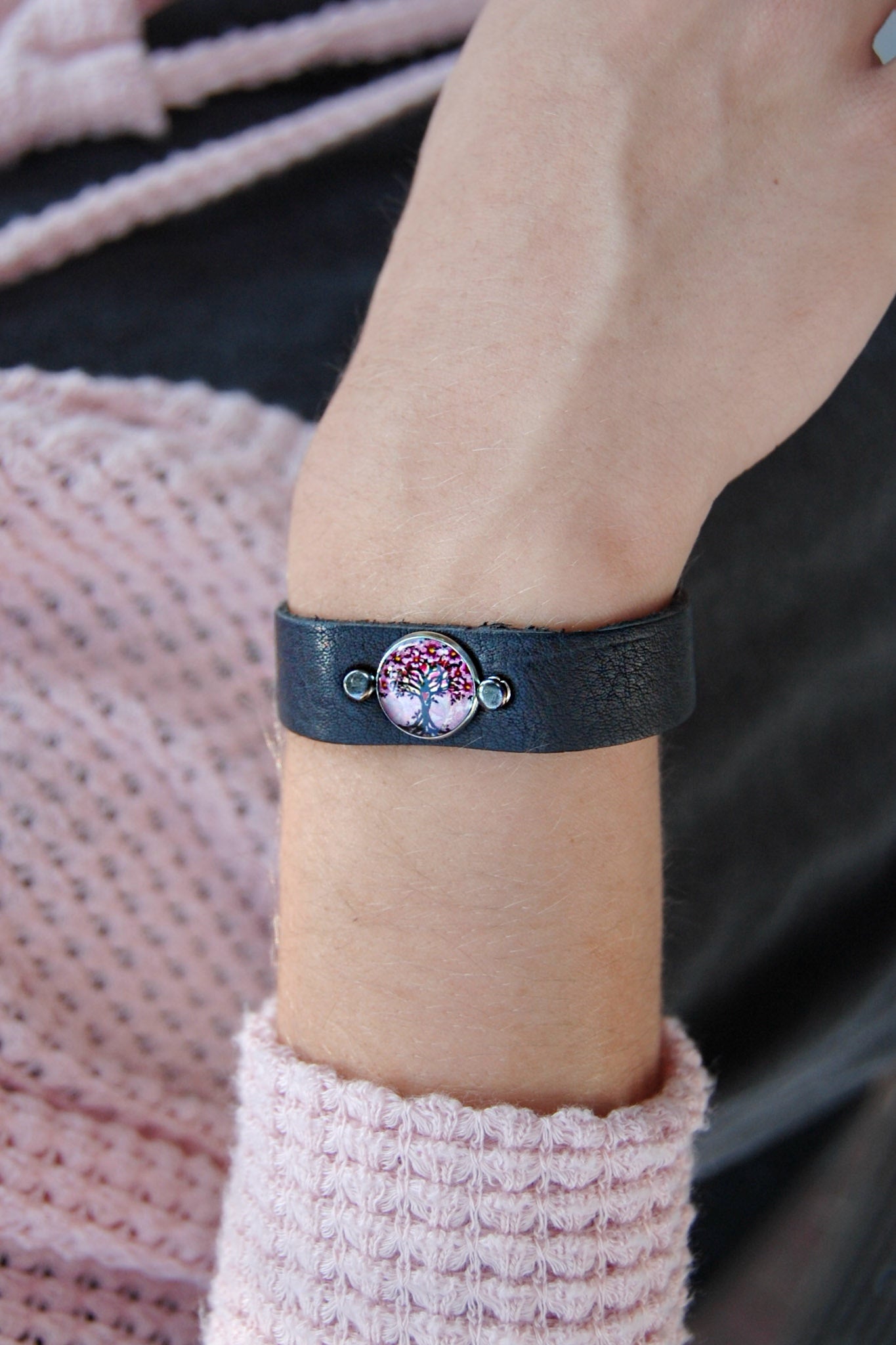 Our Spirit Lala: Pink Tree Leather Pendant Bracelet features: