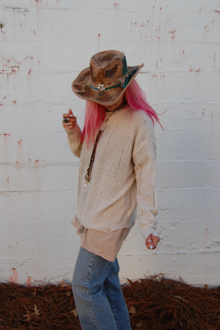 Our Donna Distressed Sweater in Alpaca is the perfect go to top layer to add to your closet, and or any on-trend bohemian style outfit! Giving your look a cozy element with its crochet detail, this sweater makes a perfect layering piece by adding on top of any bralette, tank, or tee! This Donna Distressed Sweater in Alpaca will be sure to become a favorite of your closet!