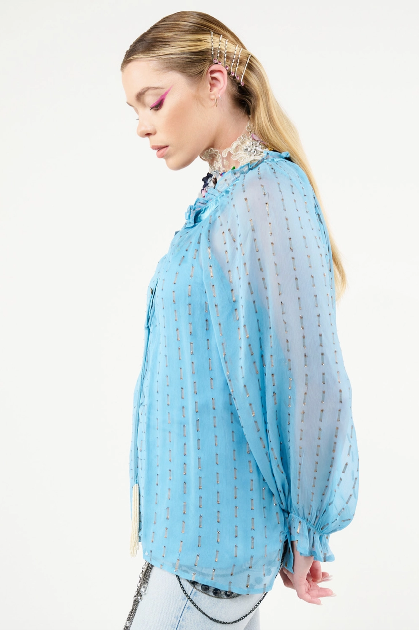 This Maven Blouse in Niagara is the perfect staple piece to add to your closet, and or any on-trend bohemian style outfit! Giving your look a beautiful and vintage element with its loose fit style and chiffon design. This blouse is perfect any on trend bohemian style outfit and is the perfect piece for any season!