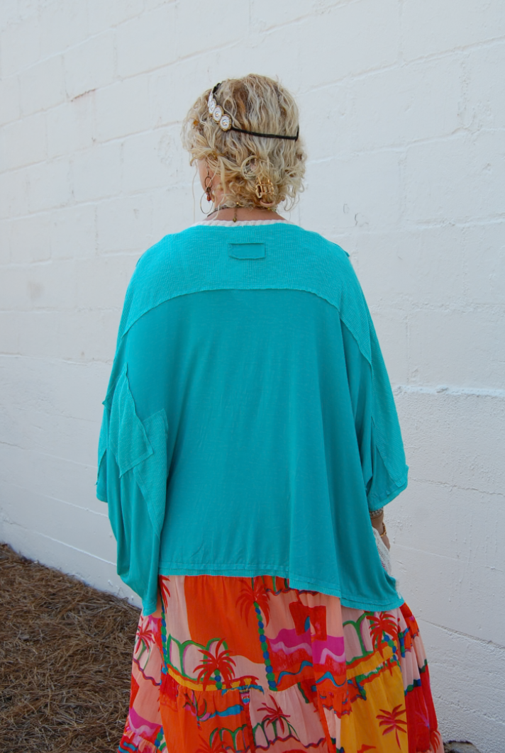 FINAL SALE Breezy V Neck Shirt in Jungle Green