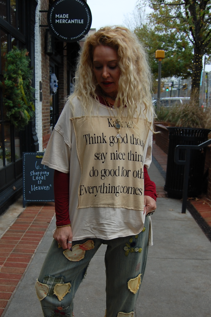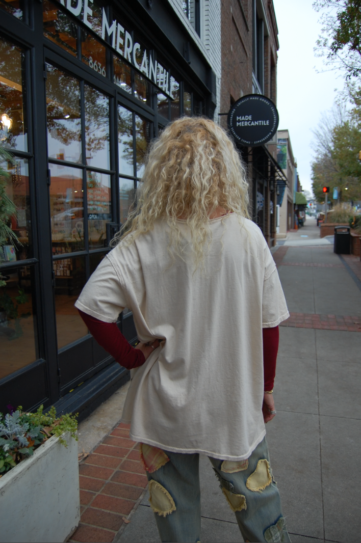 Karma Oversized Patchwork Tee in Beige
