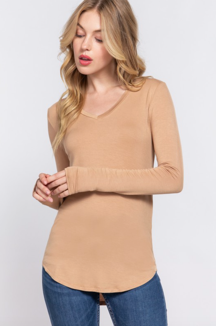 This Laney Long Sleeve Top in Oatmeal is the perfect stylish basic to add to your closet, and or any on-trend bohemian style outfit! Giving you a light breathable fit with its v-neck style, smooth fabric feel, and a combination of comfort and warmth, you can pair this top under any kimono, cardigan, jacket, dress, or low-cut top! It's designed for durability, providing an ideal combination of comfort, stretch, and breathability.