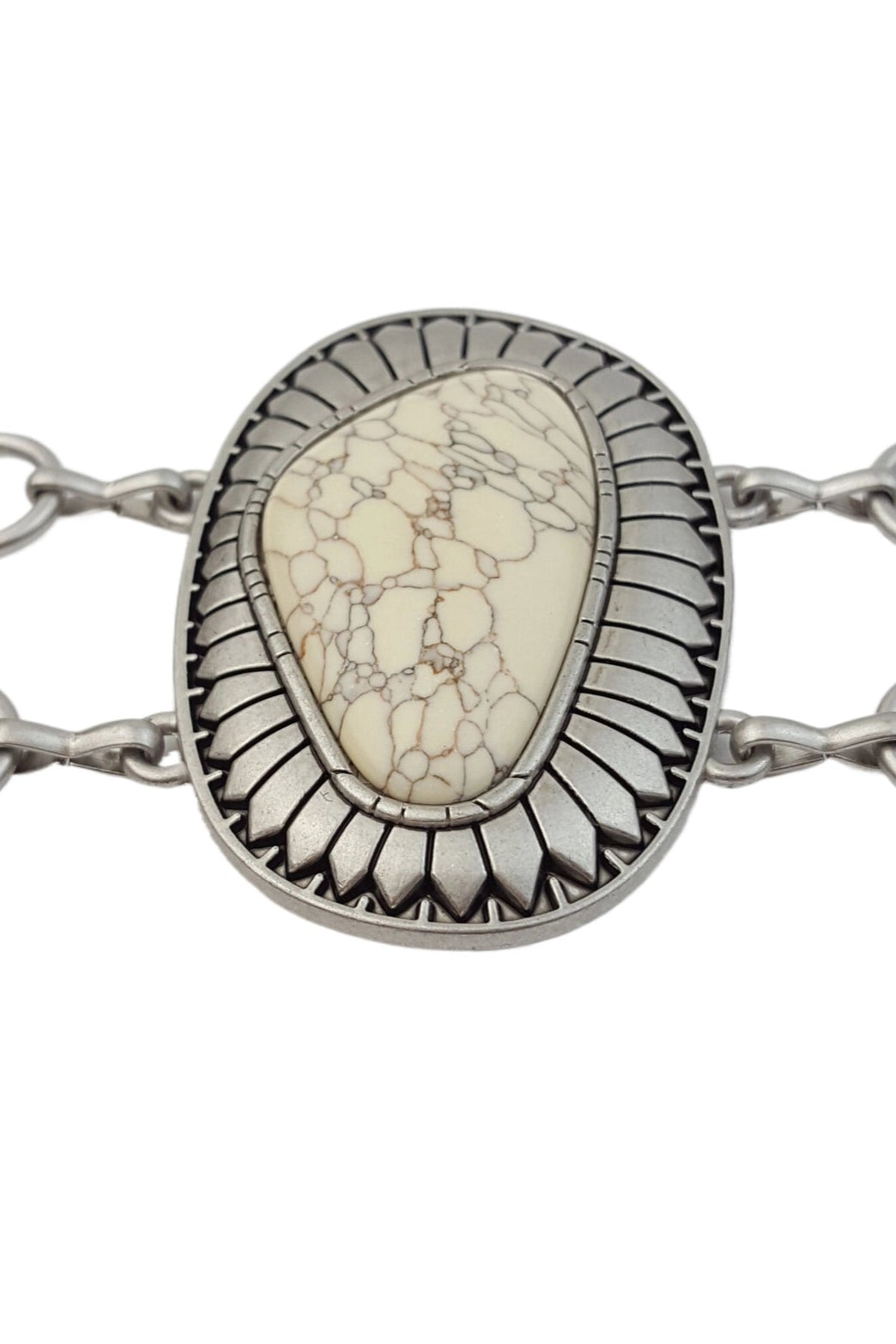 Add White Beaded Blue Stone Drop Necklace to the cart