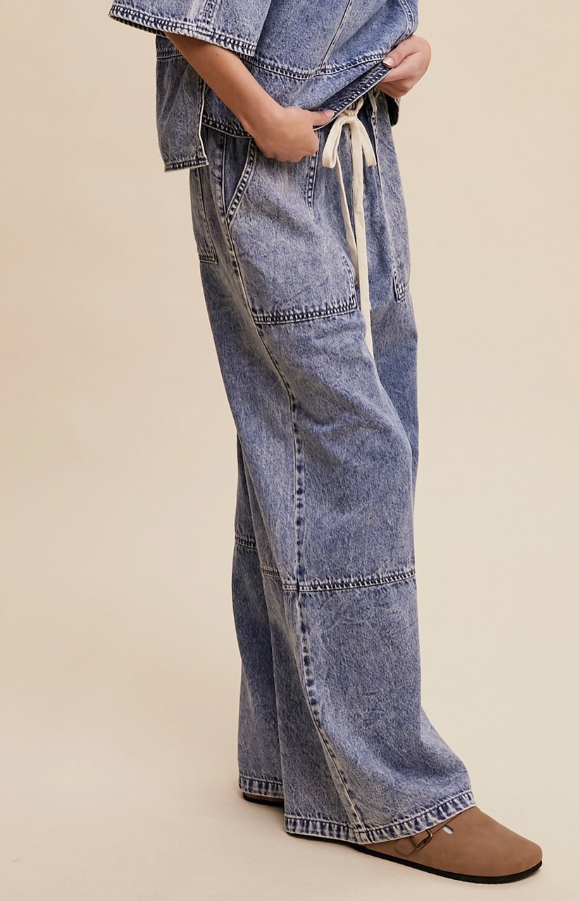 These Danni Wide Leg Denim Pants in Blue Denim are the perfect stylish bottoms to add to your closet, and or any on-trend bohemian style outfit! Accompanying a high waist and flowy fabric, front pockets, and a drawtstring tie! These pants give any look a stylish touch!