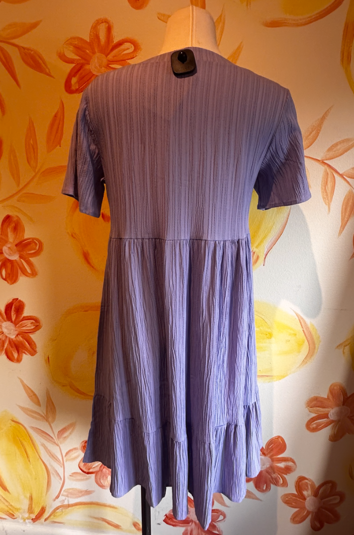The Athena Summer Dress in Purple will be your favorite wardrobe staple! The dress features textured fabric detail and a short sleeve detail! Paired with flats or heels, it's an elegant option for day or evening.