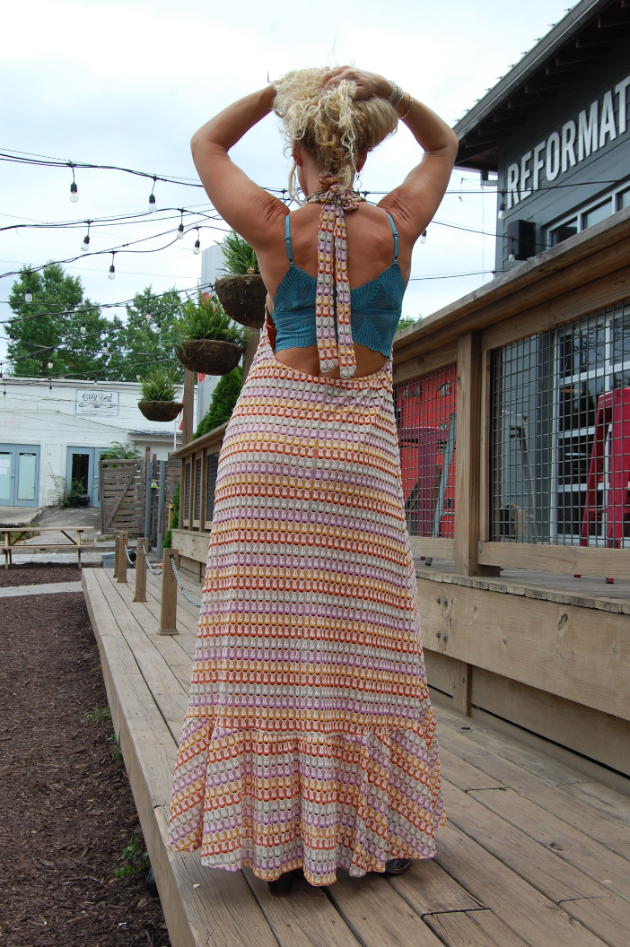 The Halle Halter Neck Maxi Dress in Multi will be your favorite wardrobe staple! The dress features a halter neck, a crochet embroidered detail, and a open back! Paired with flats or heels, it's an elegant option for day or evening.