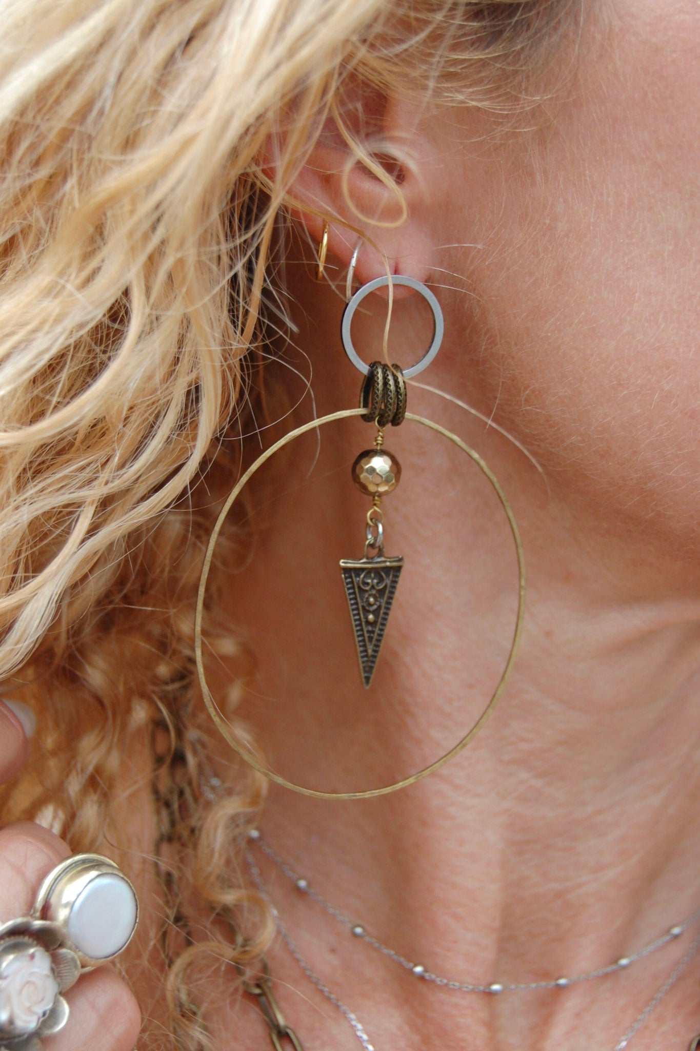 Spirit Lala Boho: 2 Circle Silver & Gold Diamond Drop Earrings