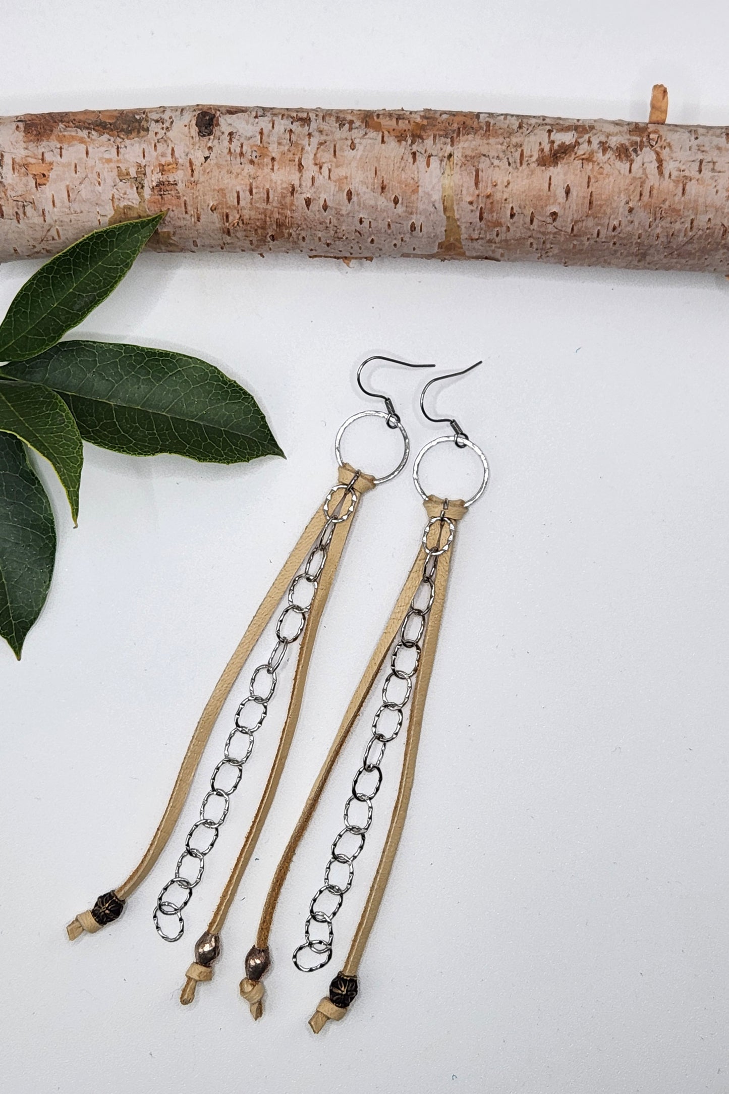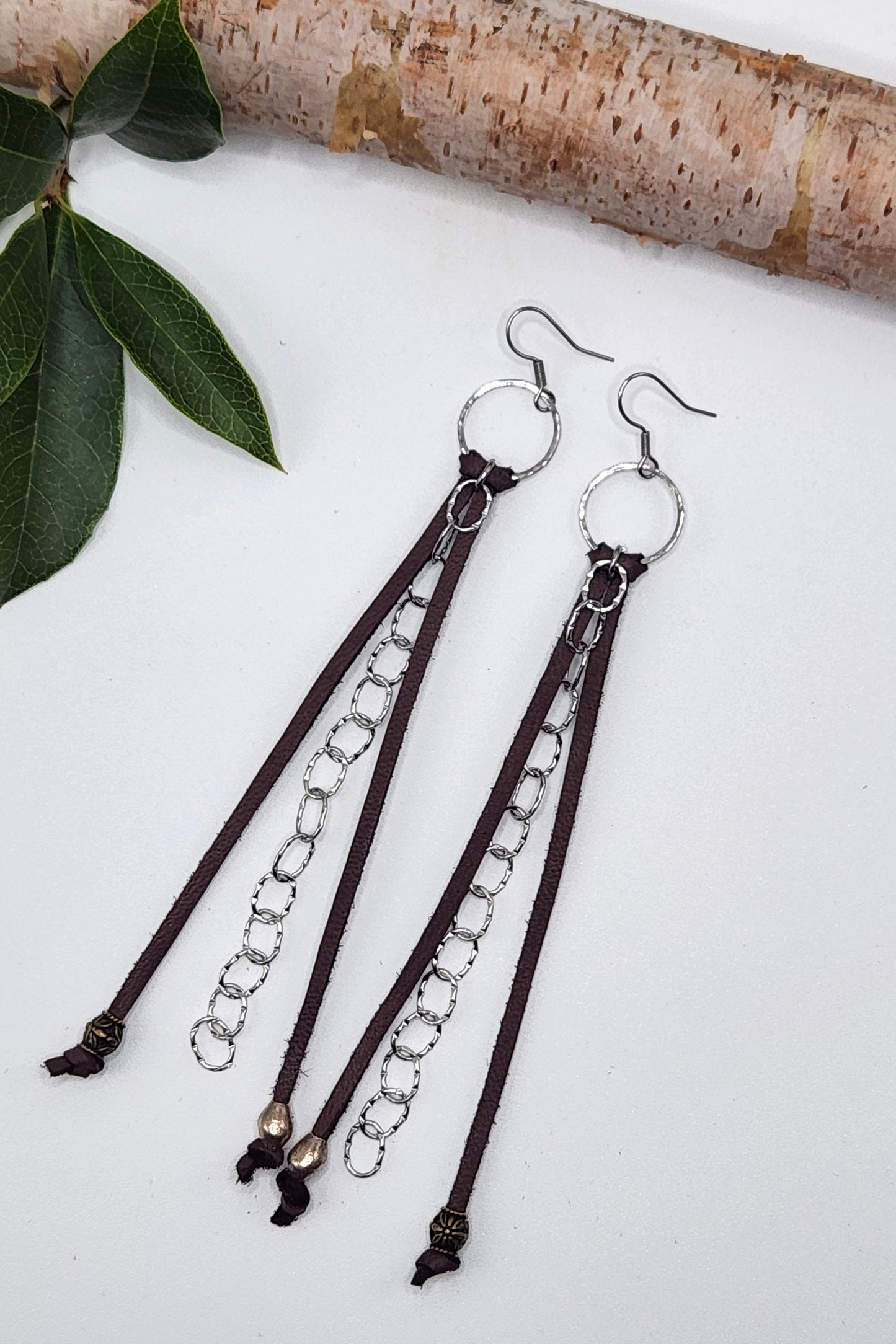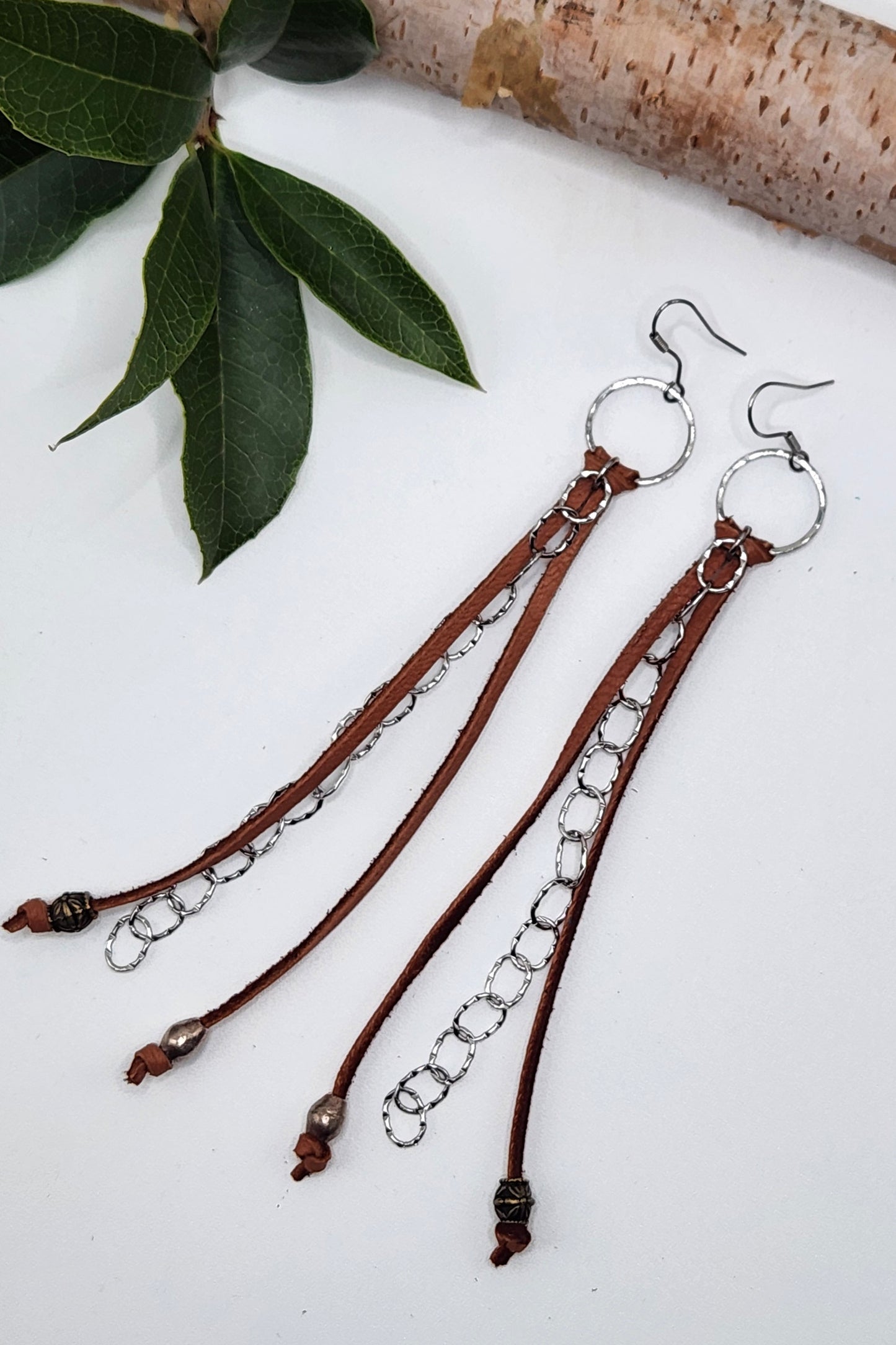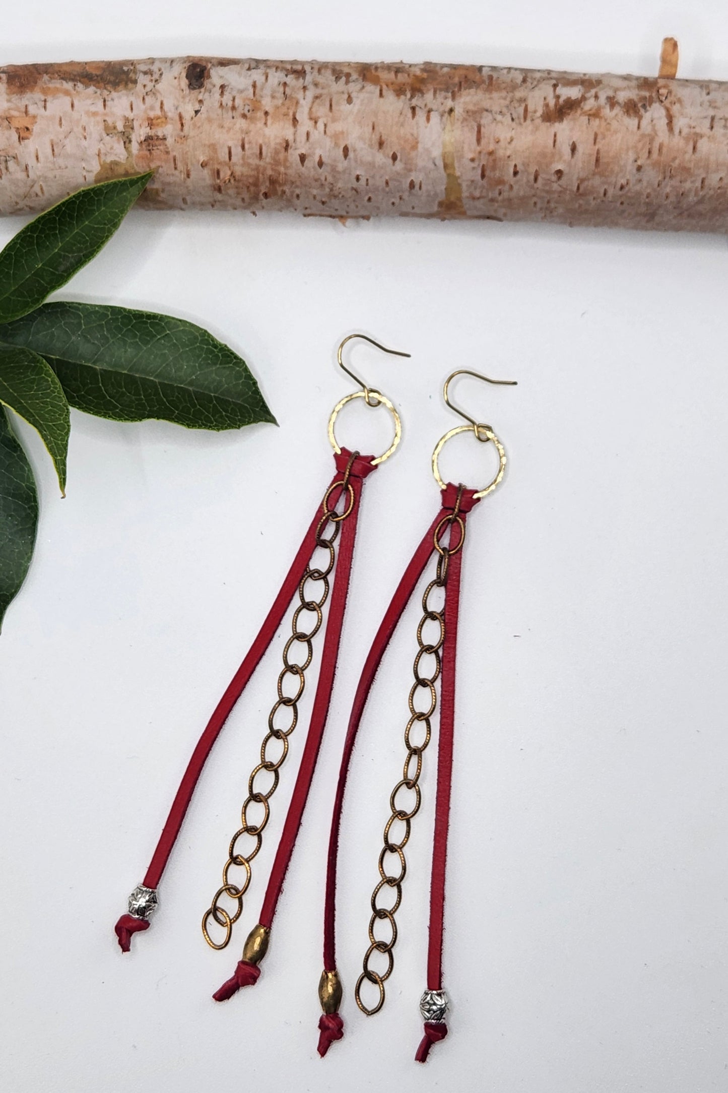 Our Spirit Lala Vintage Coin: Leather Tassel & Chain Drop Earrings feature: