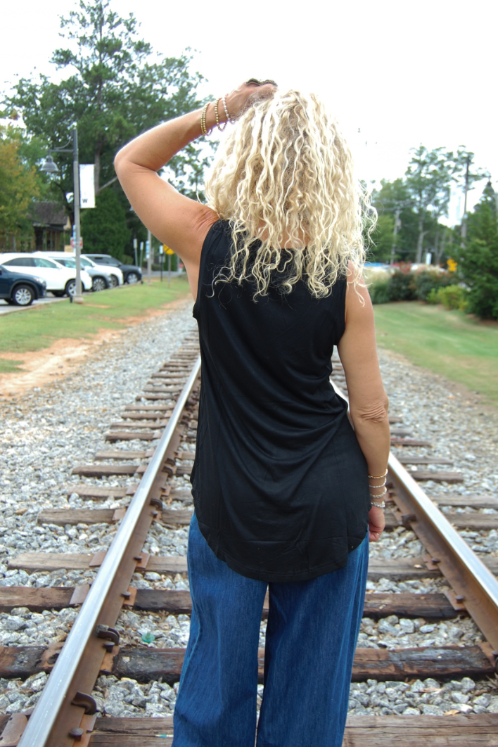 Perfectly Imperfect Graphic Tank Top in Black