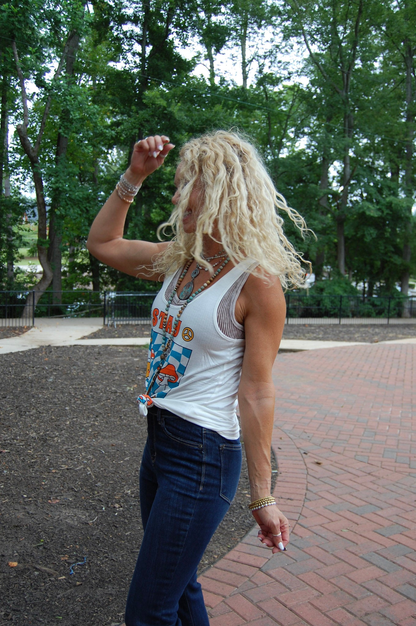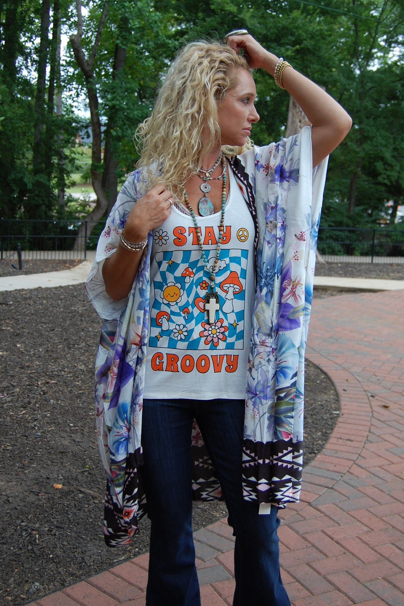• This Stay Groovy Graphic Tank Top in White is the perfect stylish basic to add to your closet, and or any on-trend bohemian style outfit! Giving you a light breathable fit, with a trendy "Stay Groovy" graphic print, you can pair this tank under any kimono, cardigan, jacket, dress, or low-cut top! It's designed for durability, providing an ideal combination of comfort, stretch, and breathability.