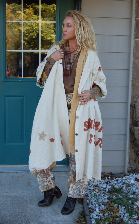 This Button Up Patchwork Duster in Cream is the perfect stylish statement piece to add to your closet, and or any on-trend bohemian style outfit! Giving your look a wonderful element with it's beautiful star patchwork & two tone design, this duster also comes with a button up detail! This stylish and beautiful duster is the perfect piece for any time of year!