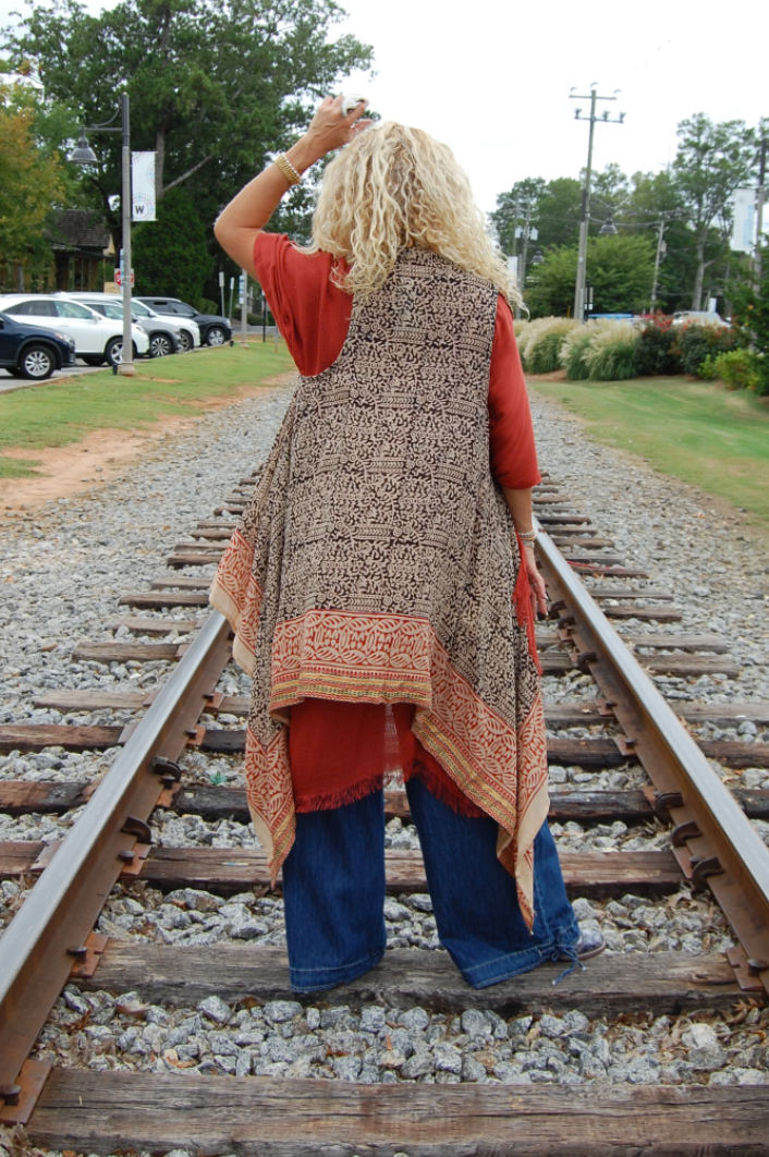 To maintain quality, this Block Print Vest in Black is best when washed in cold water and hung dry. Low ironing if needed!