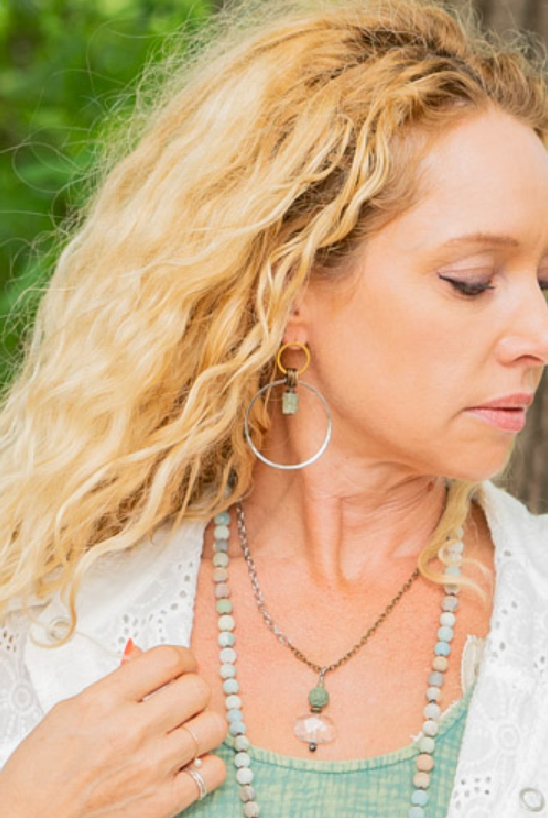 Our Spirit Lala Boho: 2 Circle Silver & Gold Earrings in Green Jade feature: