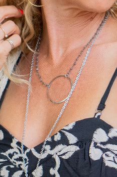 Open Circle Gemstone Necklace in Laboradite