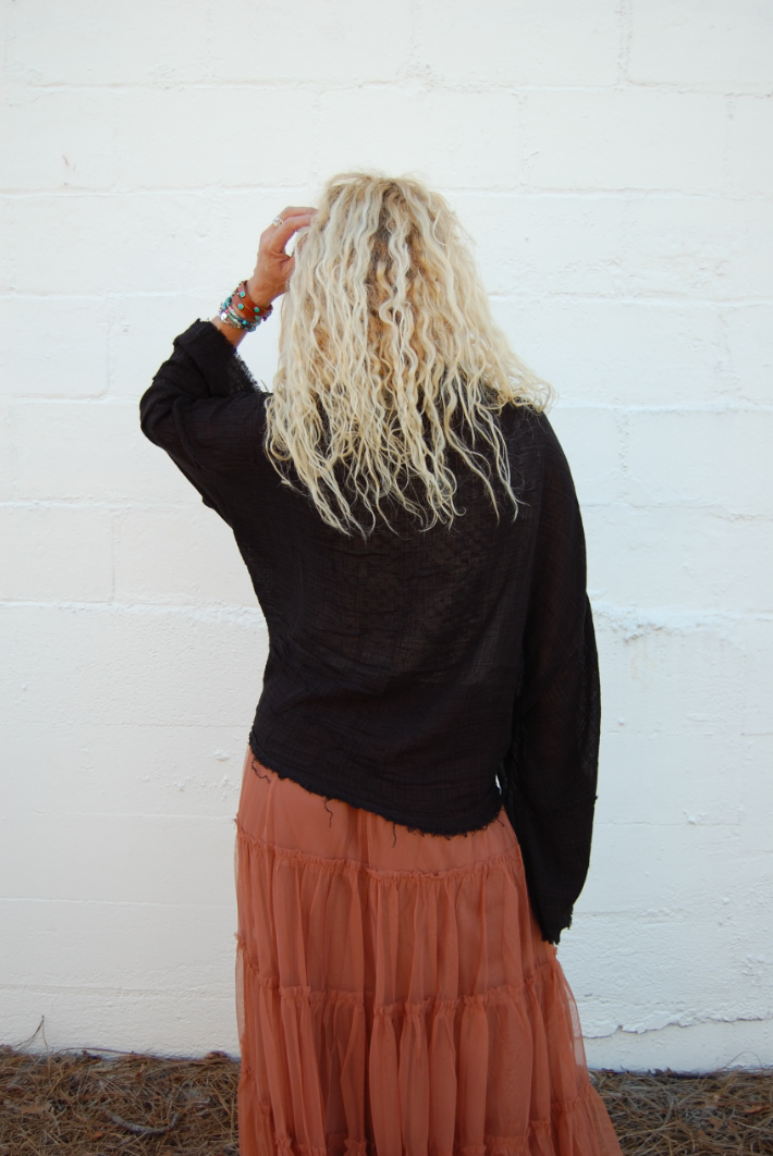 This Bohemian Dream Kimono is the perfect stylish layering piece to add to your closet, and or any on-trend bohemian style outfit! Giving your look a trendy element, this kimono makes a statement with its beautiful hand knit fabric detail, and lightly frayed and fringe detailing. This lightweight and breathable kimono is the perfect piece for any season!