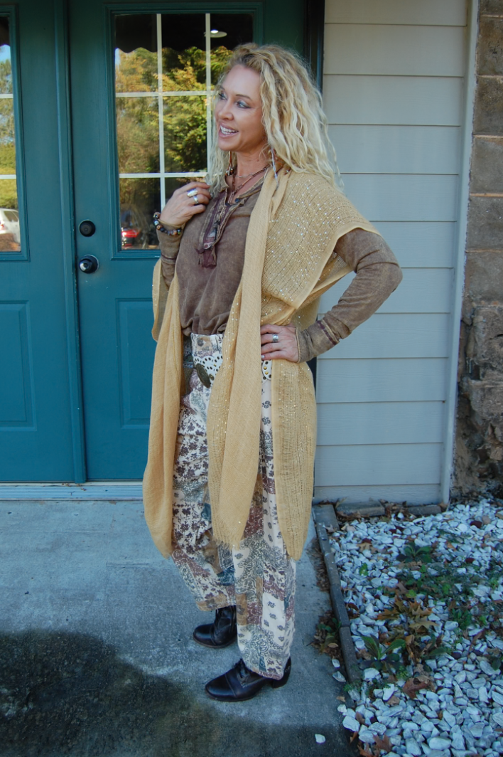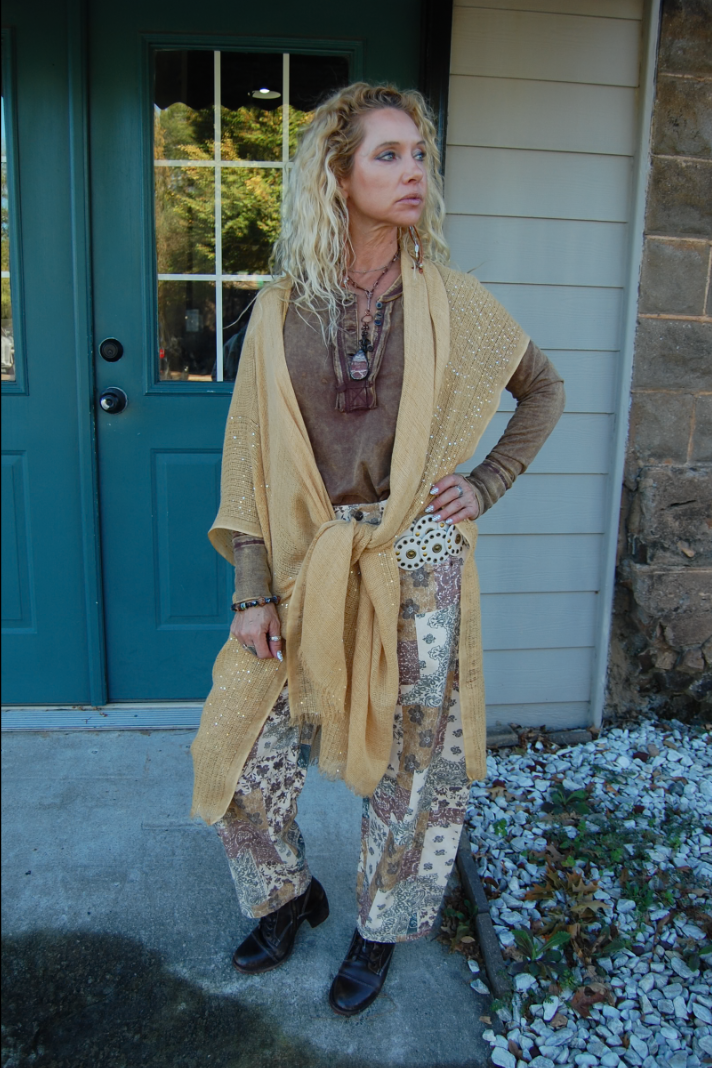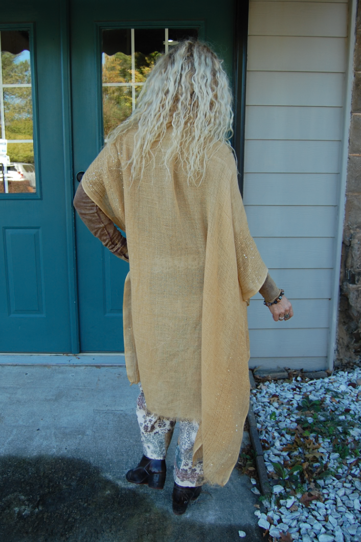 Our Dancing Queen Kimono is the perfect piece to introduce Spring time with! This kimono gives a unique vibe with the burlap look while featuring a shimmer detail along the sleeves!