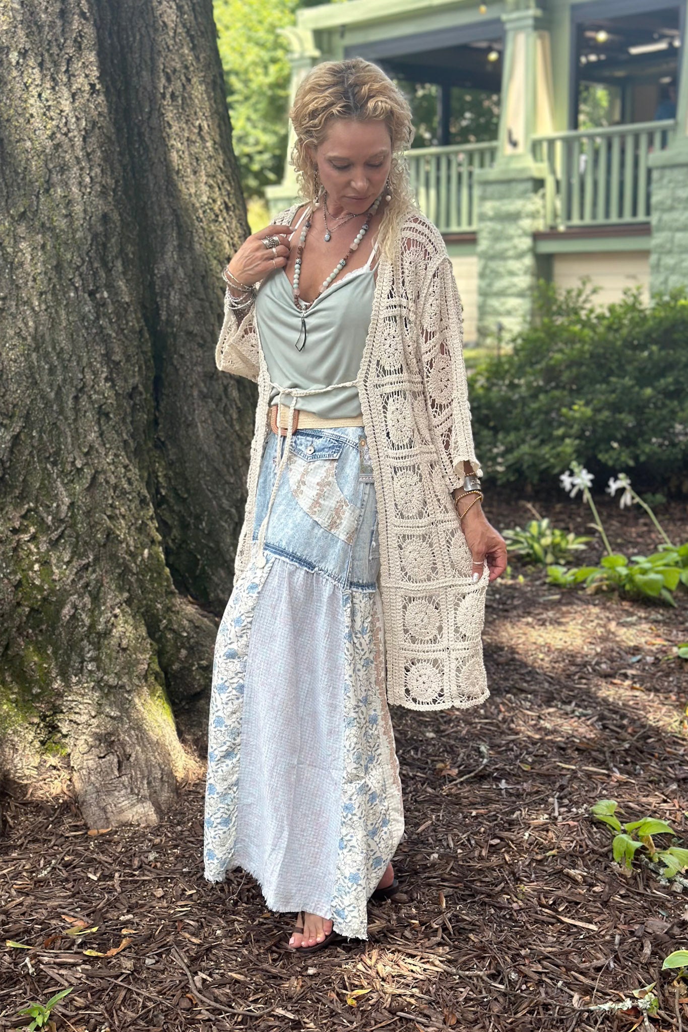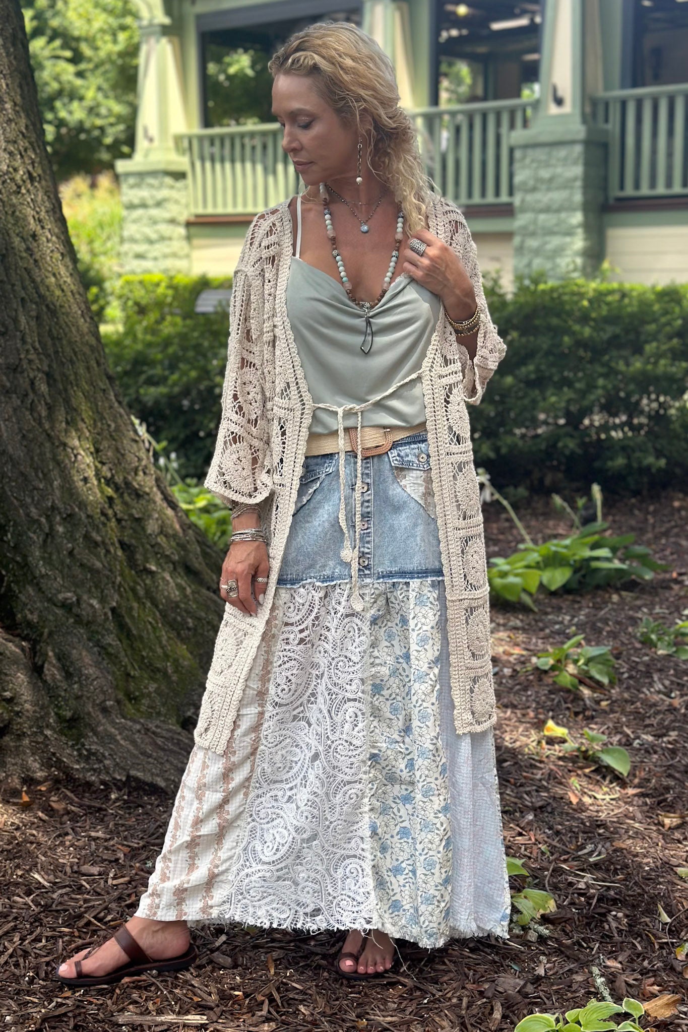 Throw on this Crochet Block Cardigan in Beige for an effortlessly chic layer. This lightweight cardigan comes with a crochet detail, a flowy bottom, and a tie closure. It's flowy and perfect for any season. This relaxed-fit piece drapes beautifully over your favorite outfits.