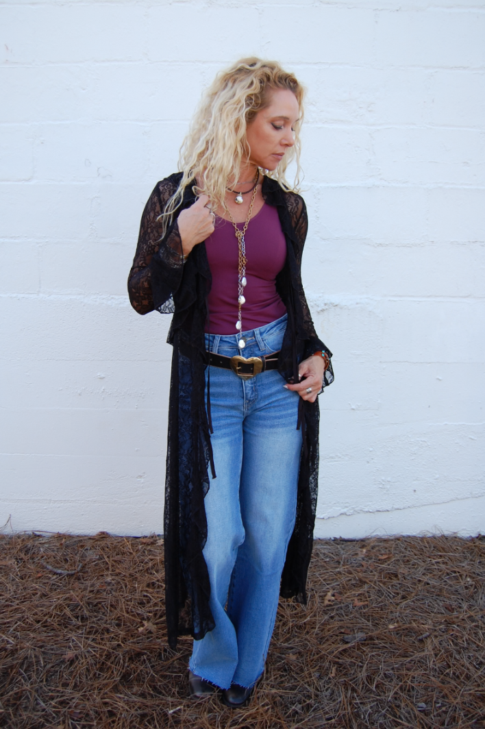 This BLana Lace Ruffle Duster in Black is the perfect stylish statement piece to add to your closet, and or any on-trend bohemian style outfit! Giving your look a wonderful element with it's beautiful lace detail, this duster also comes with a front tie detail! This stylish and beautiful duster is the perfect piece for any time of year!