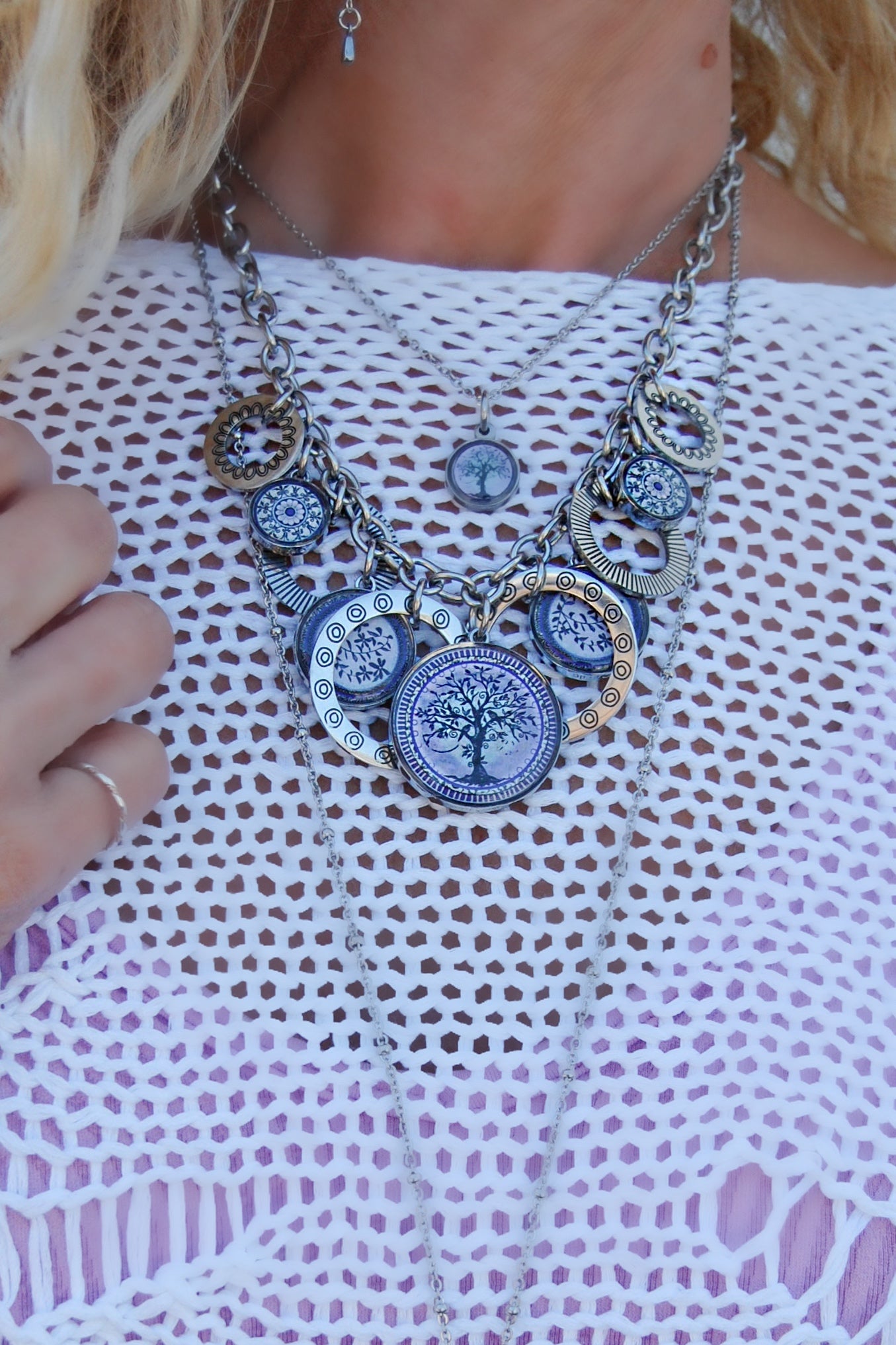 Our Spirit Lala: Tree of Life Purple 5 Circle Statement Necklace features: