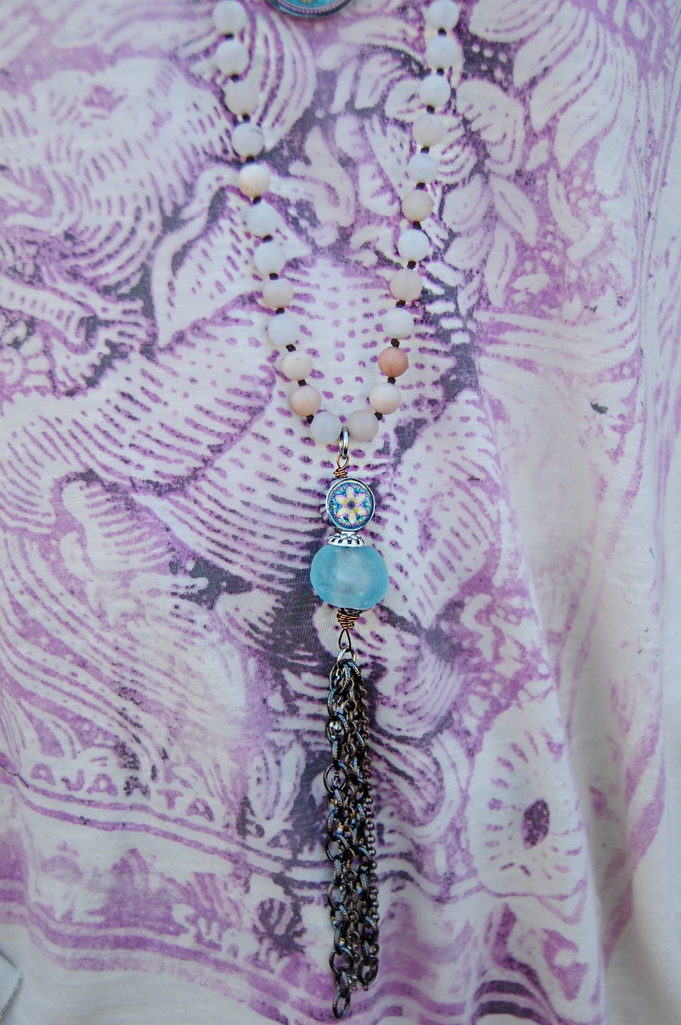 Spirit Lala: Statement Gem Yellow Flower Mandala Tassel Necklace