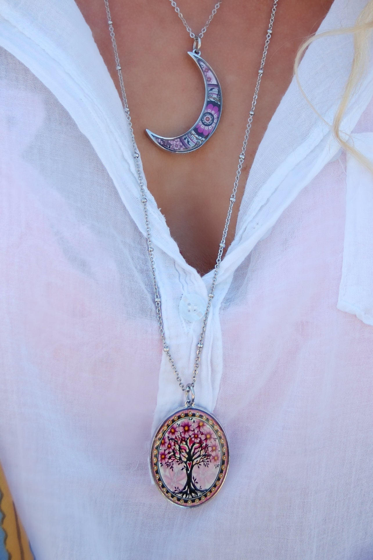 Our Spirit Lala: Tree of Life Pink Extra Large Oval Pendant Necklace is the perfect accessory to add to any on-trend bohemian style outfit! Layered with any of our many statement necklaces, of your choosing, the Spirit Lala: Tree of Life Pink Extra Large Oval Pendant Necklace will be sure to be a wonderful addition to any necklace layering style!