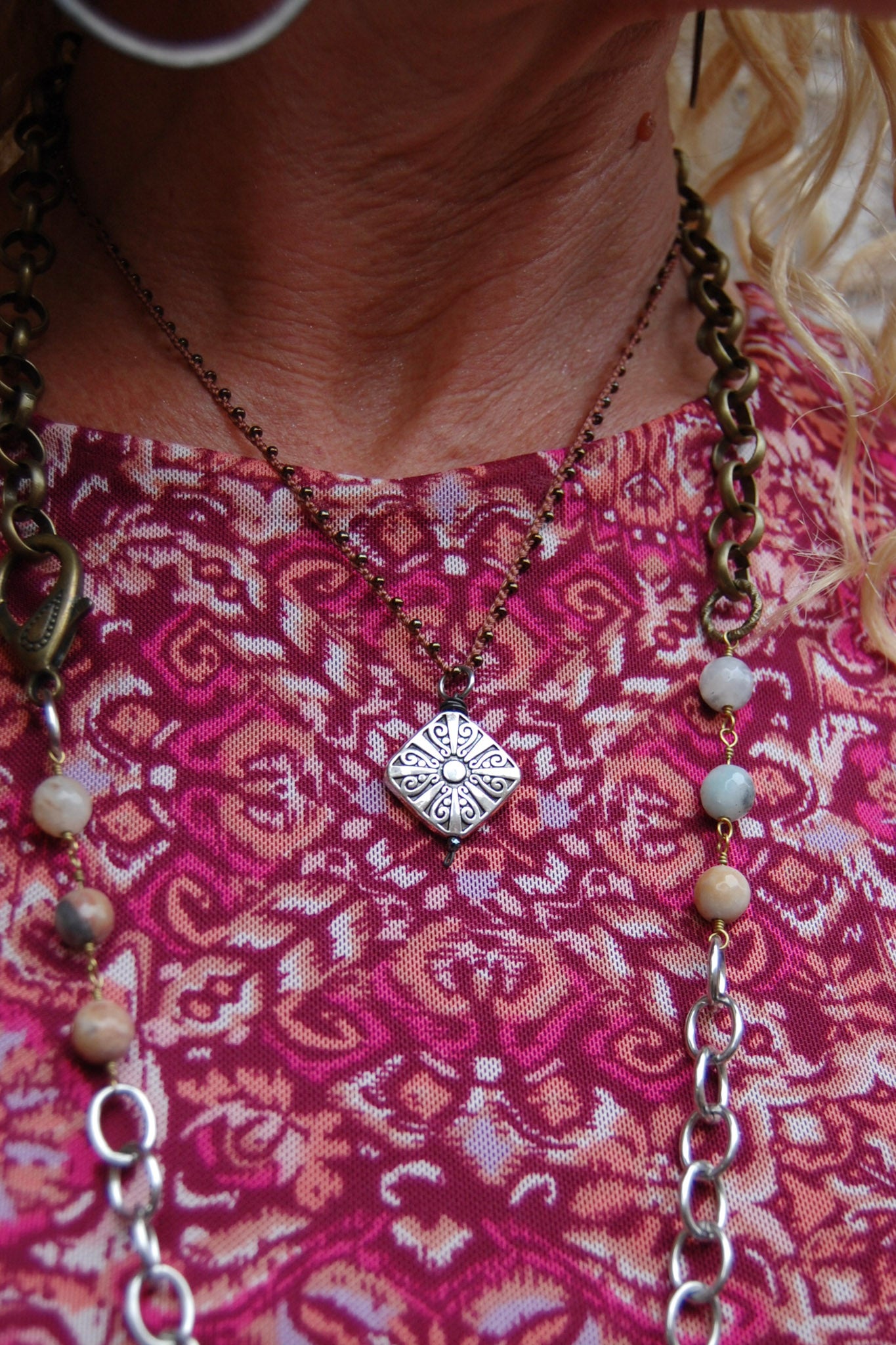 Spirit Lala Vintage Coin: The Crochet Silver Diamond Pendant Necklace