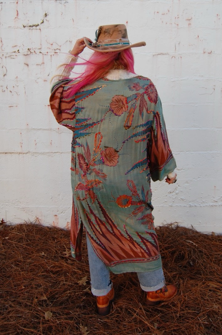 Meghan Thick Stitch Duster in Seafoam