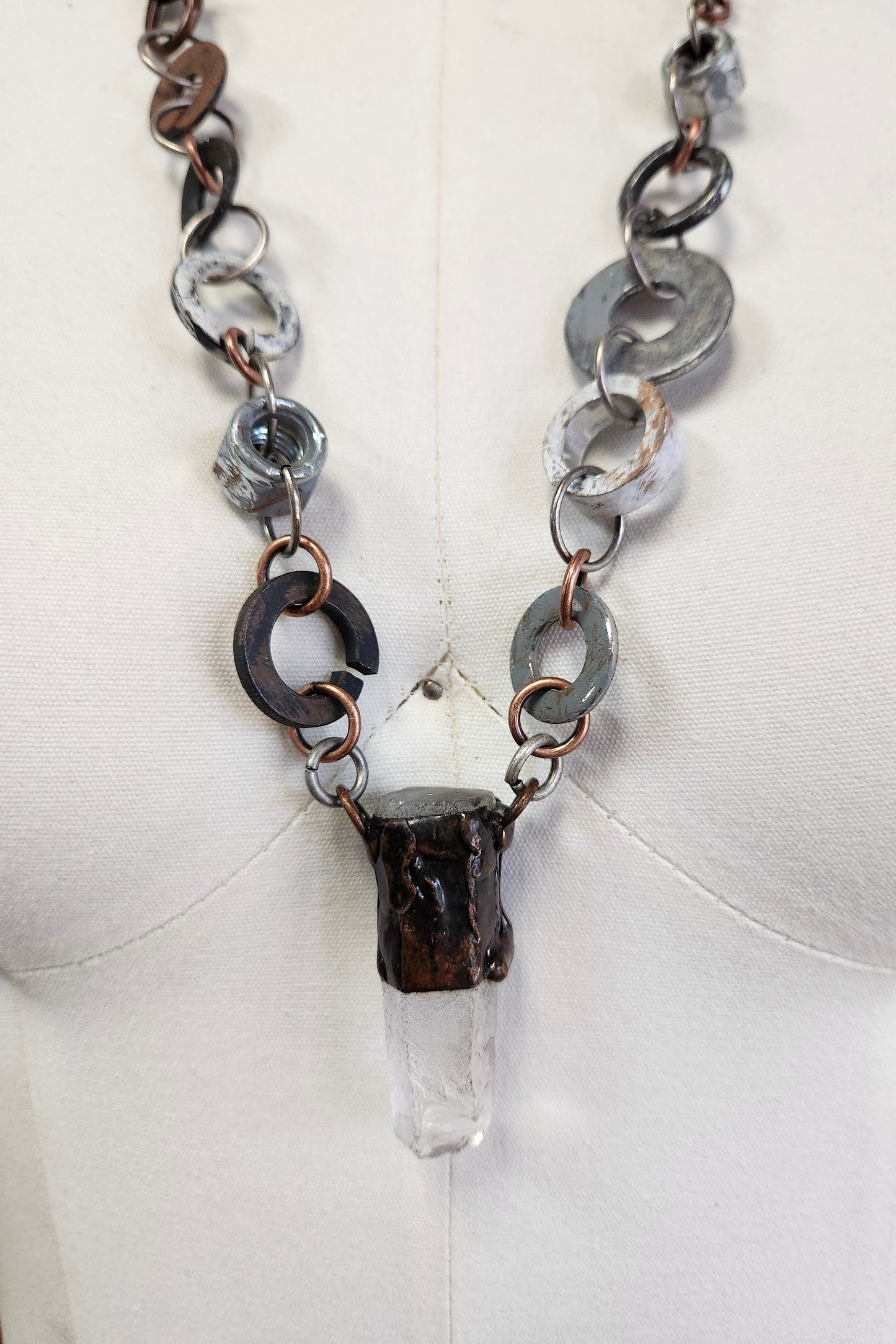 All available inventory for Large Crystal & Recycled Element Necklace has been added to the cart.
