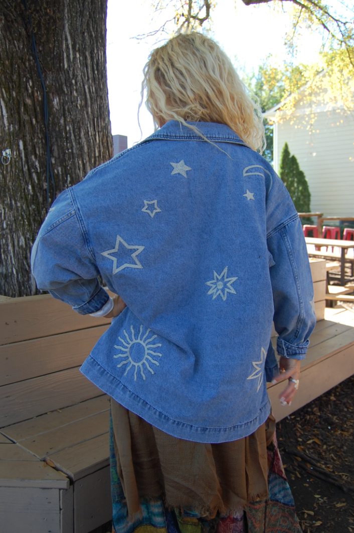 To maintain quality, this Embroidered Denim Jacket in Medium Wash is best when washed in cold water and hung dry. Low ironing if needed!