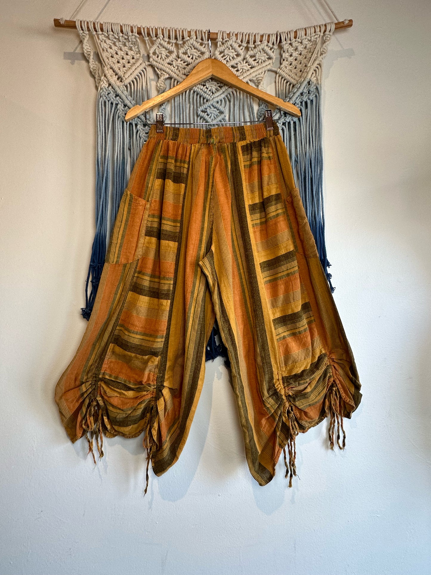 These Lounge with Me Pant in Camel Multi are the perfect stylish bottoms to add to your closet, and or any on-trend bohemian style outfit! Accompanying a striped patchwork design. These pants give any look a stylish touch!