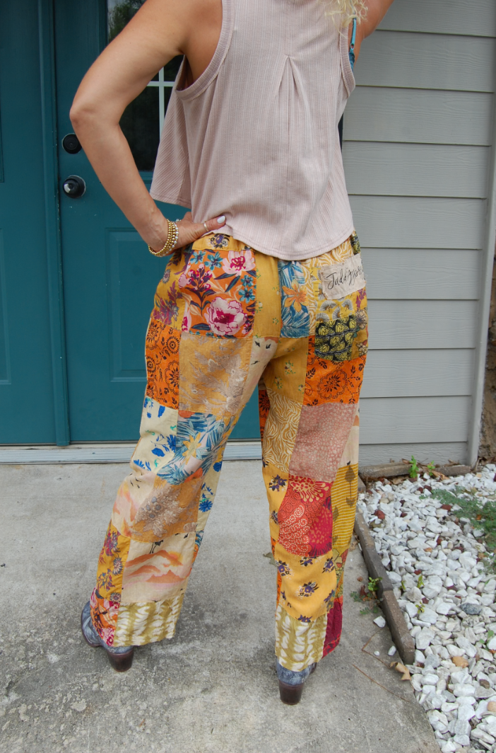 To maintain quality, these Patchwork Dreams Pants in Multi are best when hand washed cold, with like colors, and laid flat to dry.