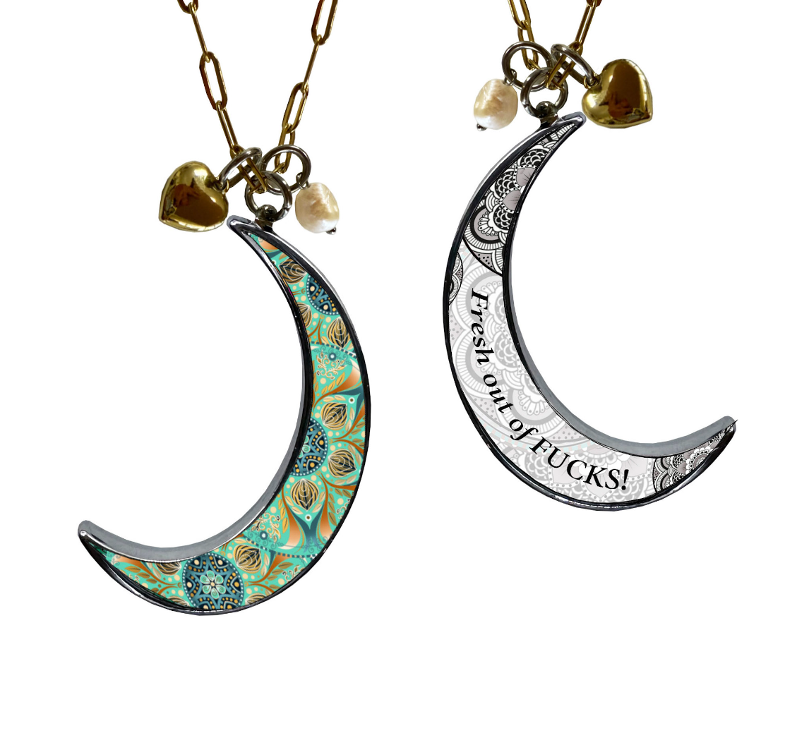 Our Spirit Lala: Fresh Out of Fucks Mandala Crescent Moon Charm Set Necklace features: