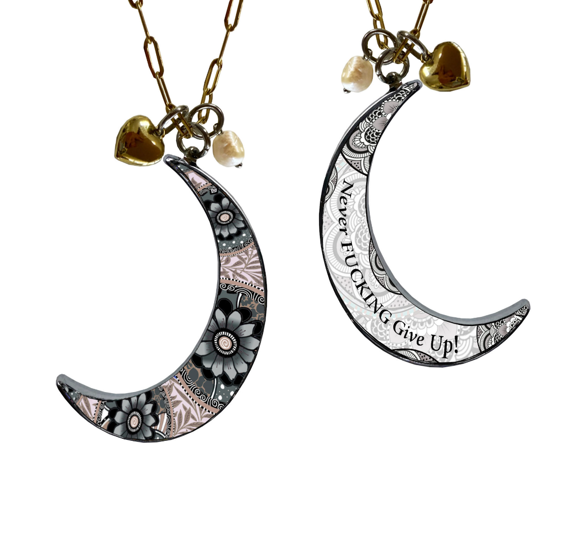 Keep Fucking Going Crescent Moon Charm Set Necklace