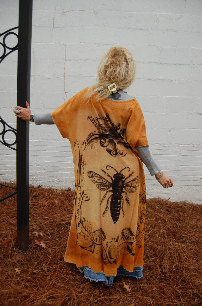 To maintain quality, this Hi-Lo Queen Bee Tunic in Gold is best when washed in cold water and hung dry. Low ironing if needed!