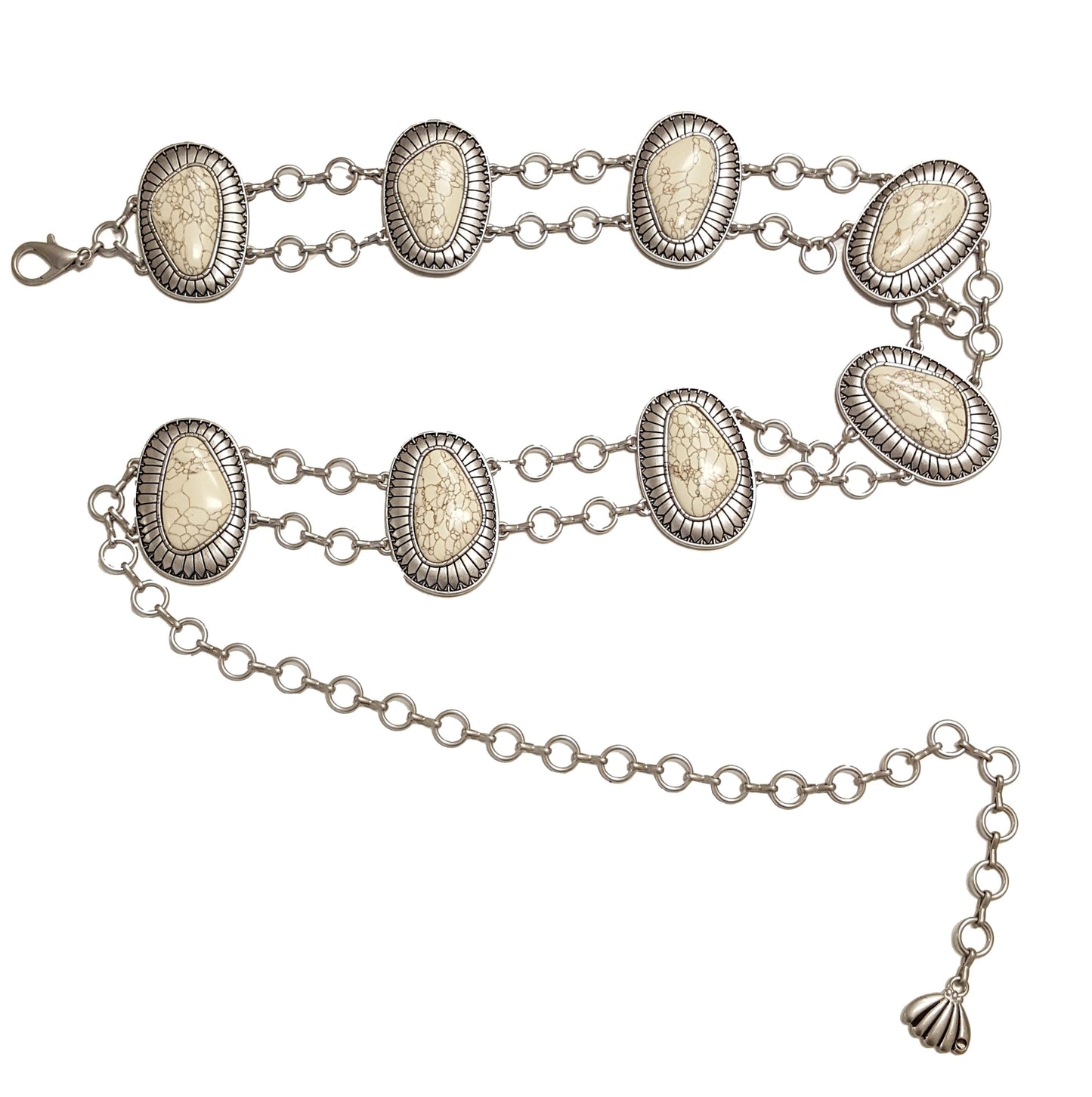 Western Double Chain Belt in Silver with Bone