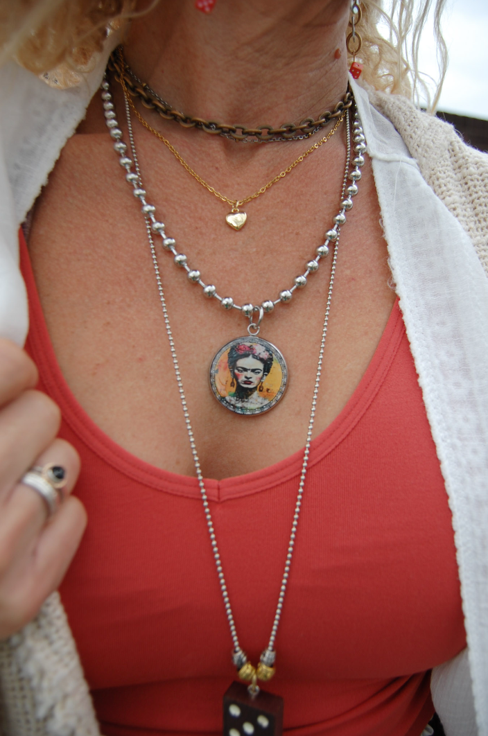 Our Frida Large Circle Distressed Pendant Necklace is the perfect accessory to add to any on-trend bohemian style outfit! Layered and paired with any of our many statement necklaces, earrings, and bracelets, of your choosing, the Frida Large Circle Distressed Pendant Necklace will be sure to be a wonderful addition to any necklace layering style!