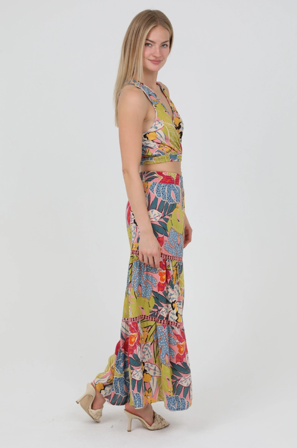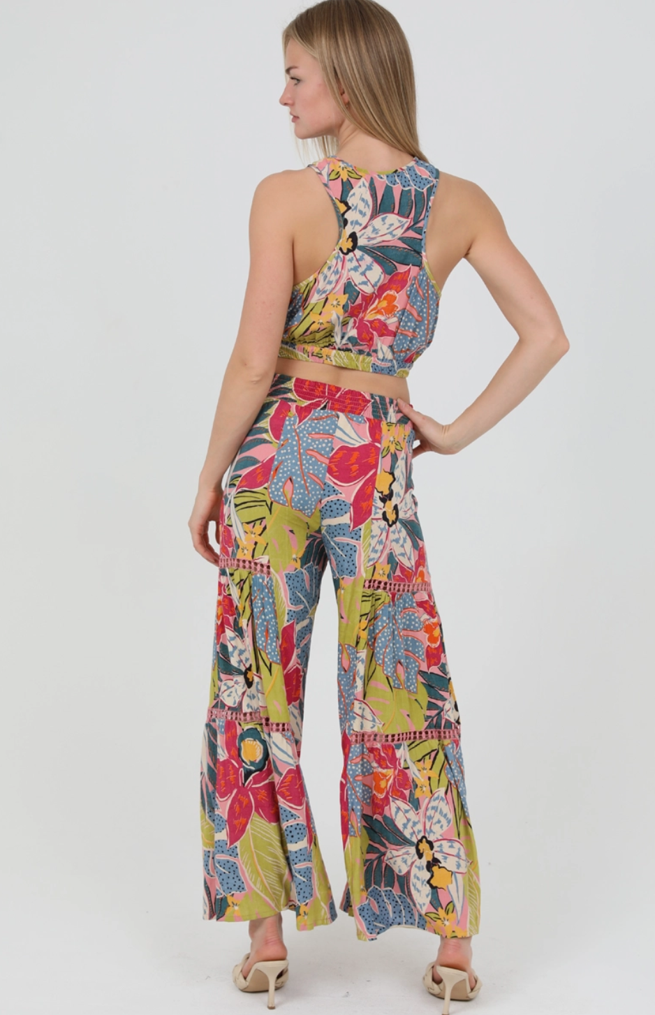 To maintain quality, these Eilish Pants in Tropical Multi are best when hand washed cold, with like colors, and laid flat to dry.